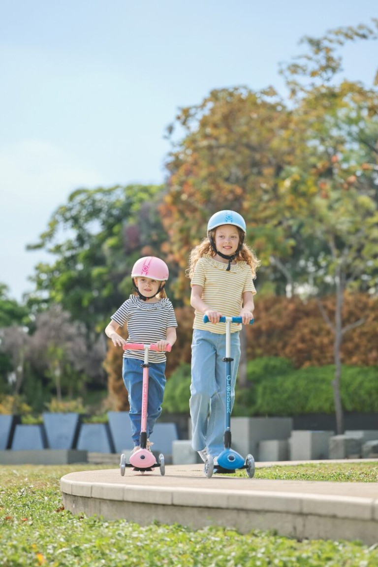 Tato tříkolová dětská skládací koloběžka Globber Elite Lights nabízí ideální rovnováhu mezi bezpečností, komfortem a zábavou pro děti od 3 do 9 let. Při výrobě byl kladen důraz na udržitelnost, proto obsahuje až 28 % recyklovaného plastu. Přední kolečka jsou vybavena bílými LED světly, která fungují na principu kinetické energie, takže nevyžadují žádné baterie a svítí tím jasněji, čím rychleji dítě jede.