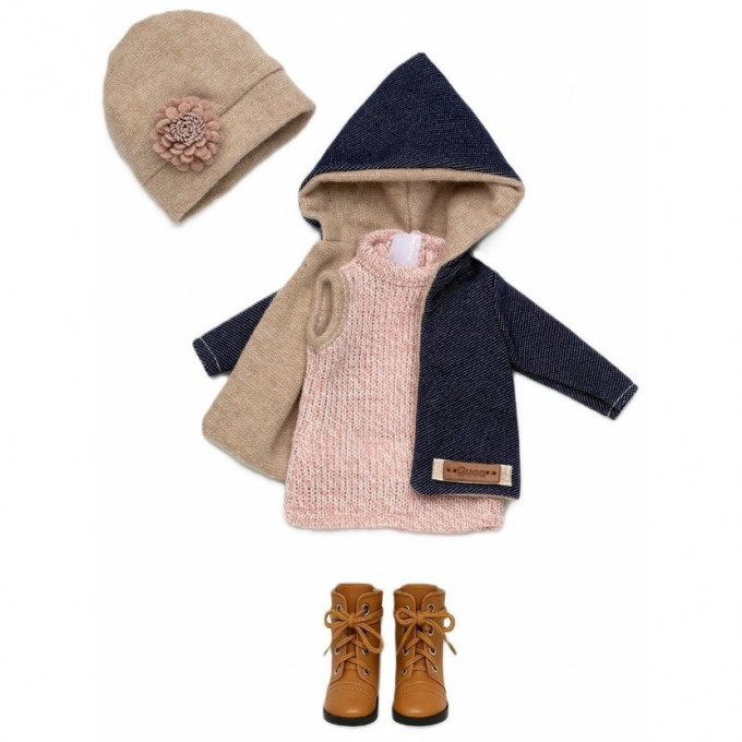 5dílný set: 4 kusy oblečení a botičky pro panenku Penelope velikosti 34 cm. Vyrobeno ručně ve Španělsku.