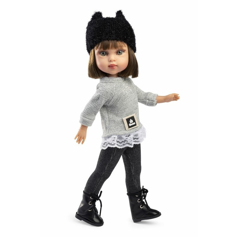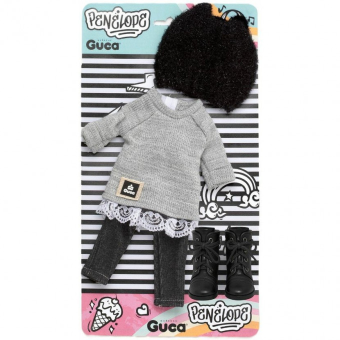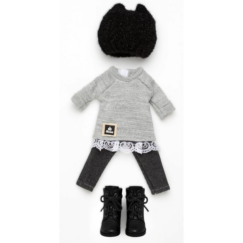 4dílný set: 3 kusy oblečení a botičky pro panenku Penelope velikosti 34 cm. Vyrobeno ručně ve Španělsku.
