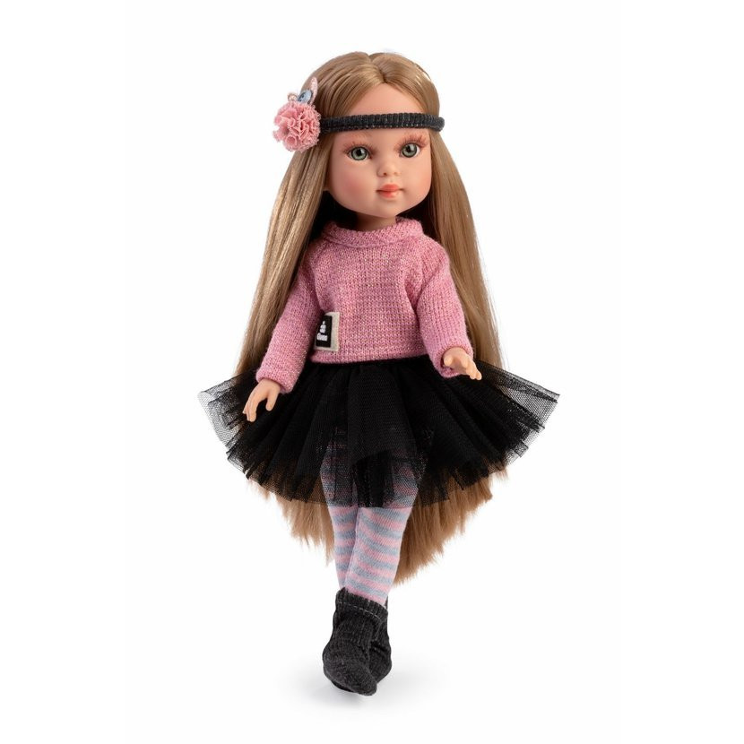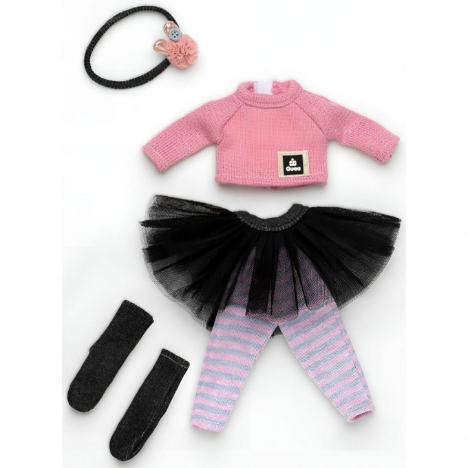 5dílný set: 4 kusy oblečení a ozdobná čelenka pro panenku Penelope velikosti 34 cm. Vyrobeno ručně ve Španělsku.