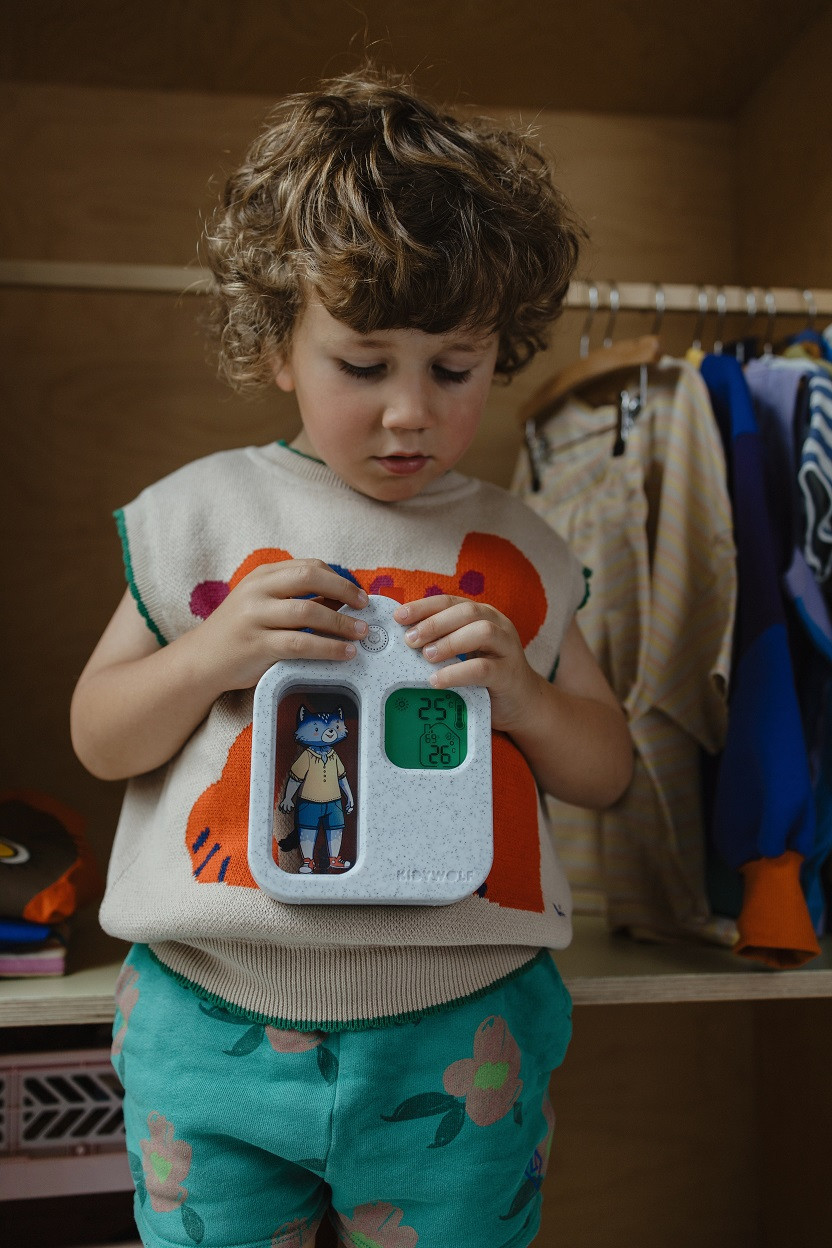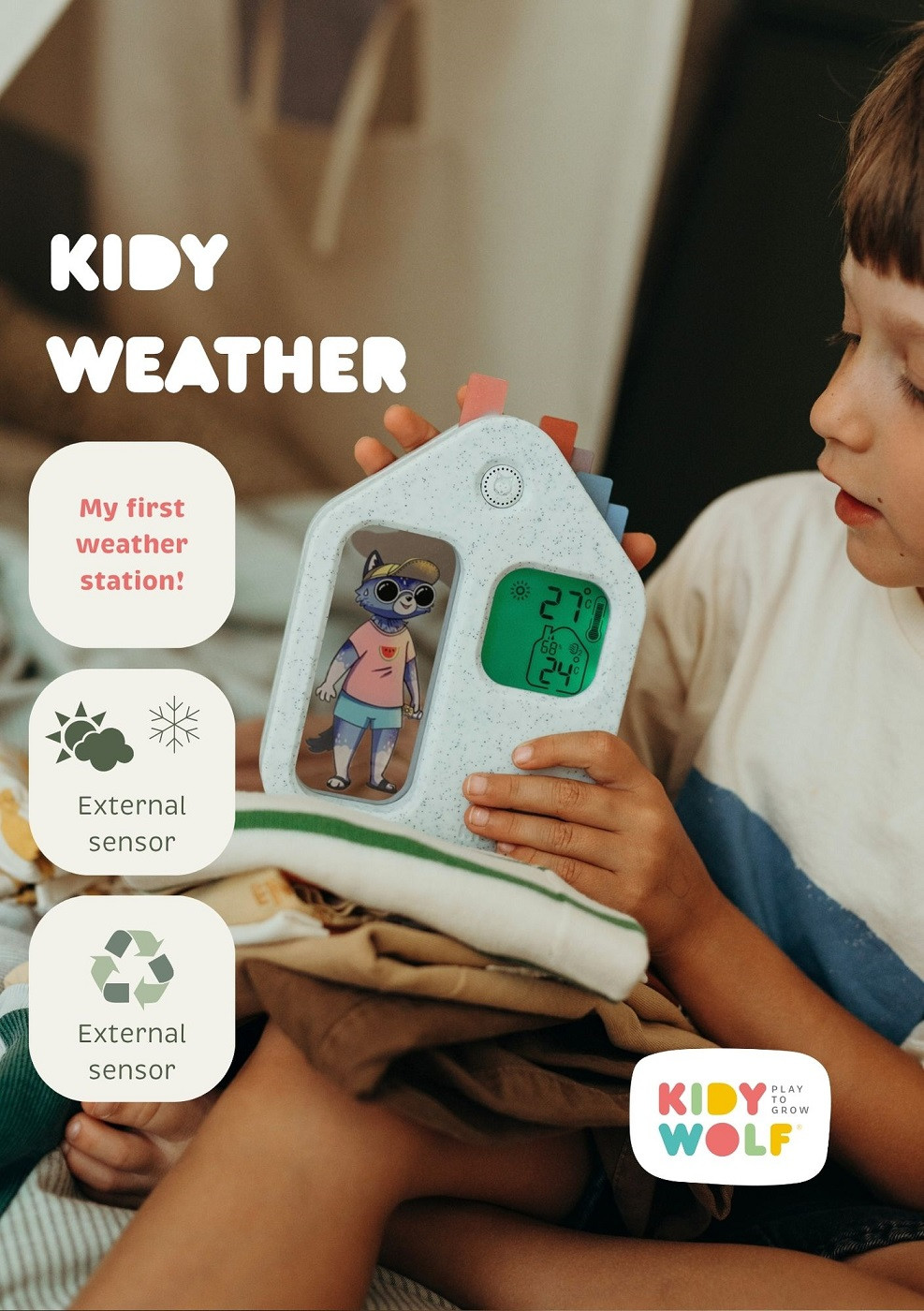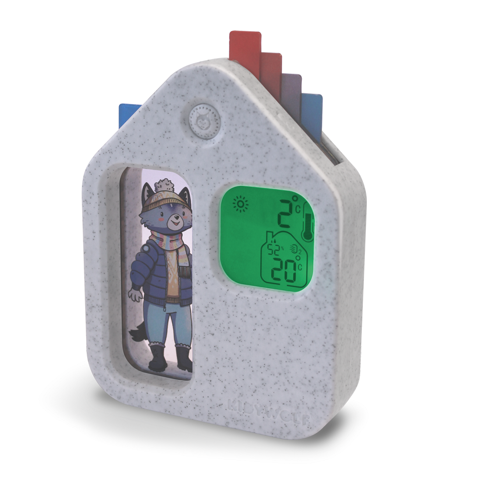 Ranní rutina se s KIDYWEATHER mění v interaktivní hru. Děti nejprve zhodnotí počasí pohledem z okna, poté se podívají na údaje z meteostanice a vyberou odpovídající oblečení. Díky světelnému systému dostanou okamžitou vizuální zpětnou vazbu: zelená pro správnou odpověď a červená pro nesprávnou. Tato funkce je zábavná a motivující a zároveň pomáhá dětem se každý den samostatně připravovat.