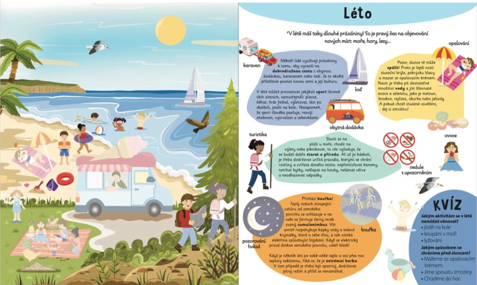 Nejde jen o prohlížení obrázků, knížka děti aktivně zapojuje pomocí úkolů, kvízů a samolepek, které doplňují jednotlivé scény. Děti si tak přirozeně procvičují jemnou motoriku, představivost i schopnost soustředění, a přitom se nenásilně učí nové informace o přírodě.