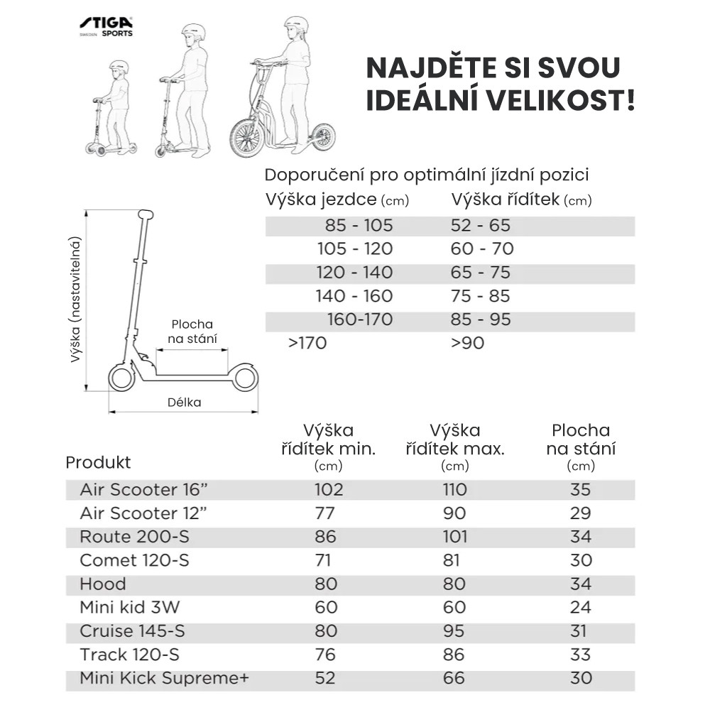 Koloběžka Comet 120-S je vyrobená švédskou firmou STIGA, která je známá vysokou kvalitou svých výrobků a zakládá si na precizním zpracování i toho nejmenšího detailu. Comet 120-S je pro všechny děti od pěti let, které mají rády pohyb na čerstvém vzduchu. Koloběžka je vyrobená z pevné hliníkovo-ocelové konstrukce, která je odlehčena. Jízda je tak pohodlná a snadná.