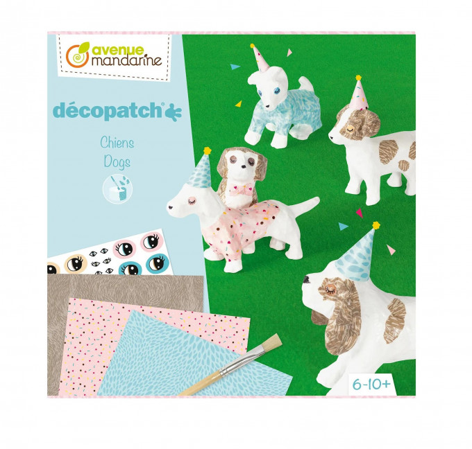 Kreativní sada pro děti od 6 do 10 let, díky které si vyzkouší techniku tvoření pomocí lepení dekorativního papíru na povrch předmětů. Tato sada nabízí vše potřebné k dozdobení pěti figurek psů z kašírované hmoty v originální dekorace.