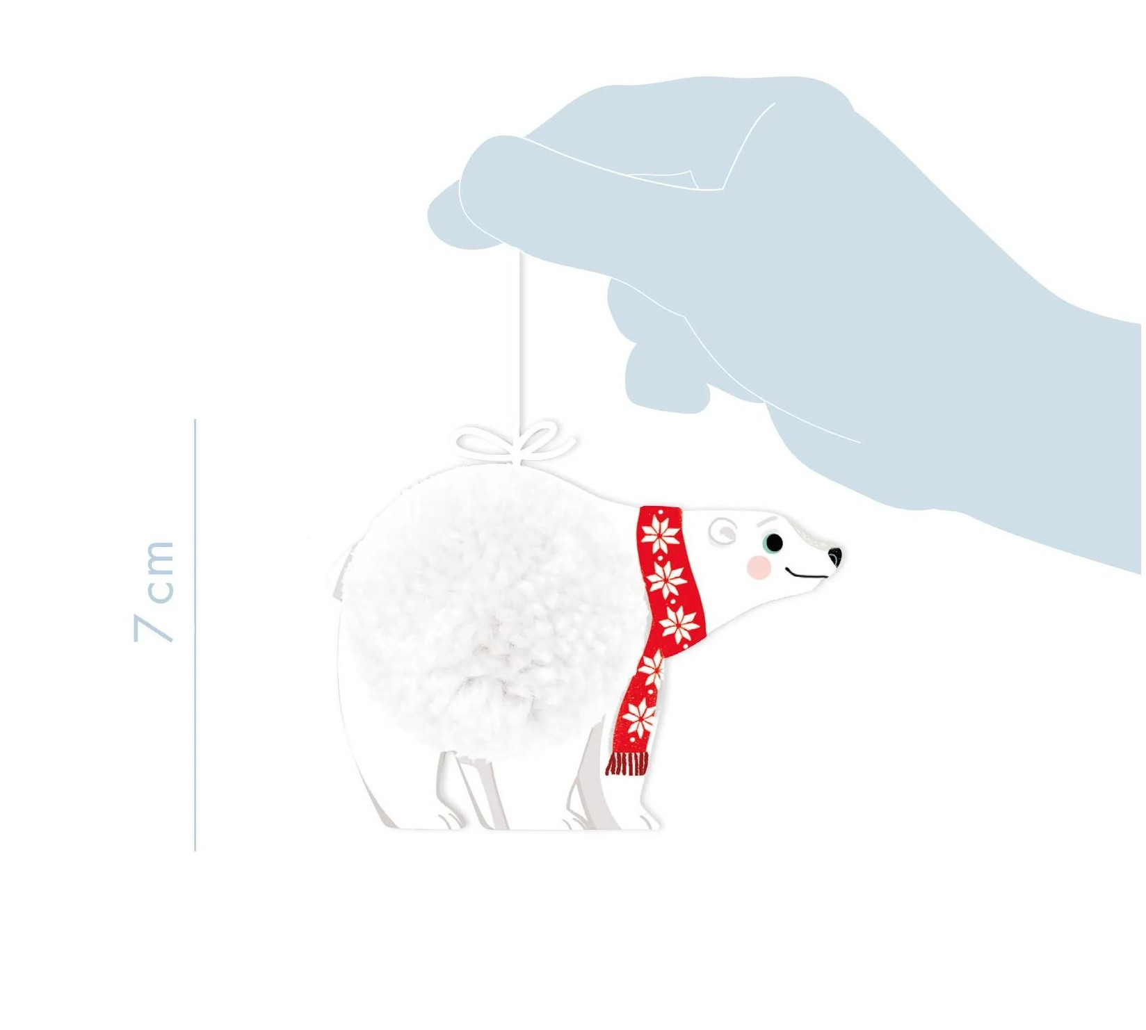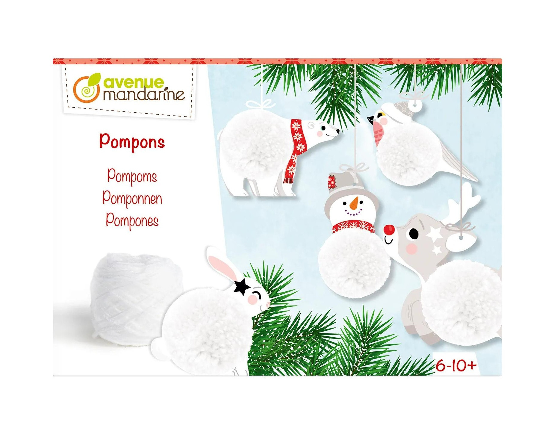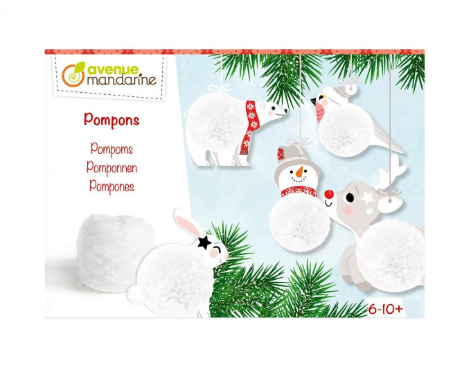 Obsah balení: 6 kartonových dílů, 2 klubíčka bílé příze, 2 tvořítka na výrobu bambulek, ilustrovaný návod.