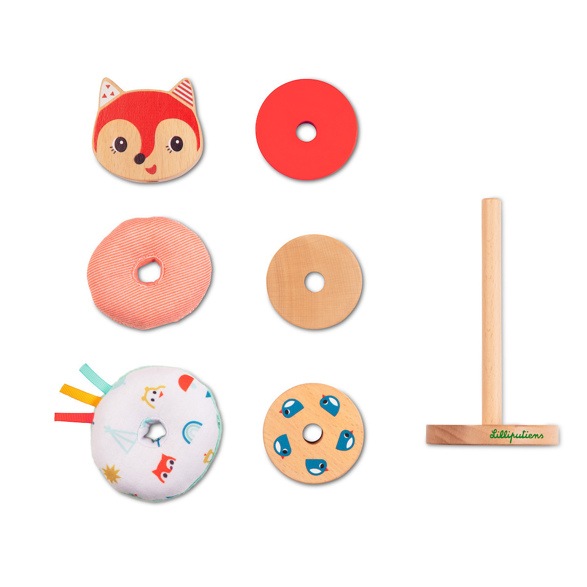 Stohovací motorická hračka liška Alice je určena pro malé děti již od 12 měsíců. Děti se budou bavit při sestavování a následné demontáži pyramidy. Hračka rozvíjí jemné pohybové schopnosti děti a zručnost. S touto hračkou neexistuje žádný správný ani žádný špatný způsob sestavení. Díly si děti sestavují jak se jim líbí, pokaždé tak Alice vypadá trochu jinak.