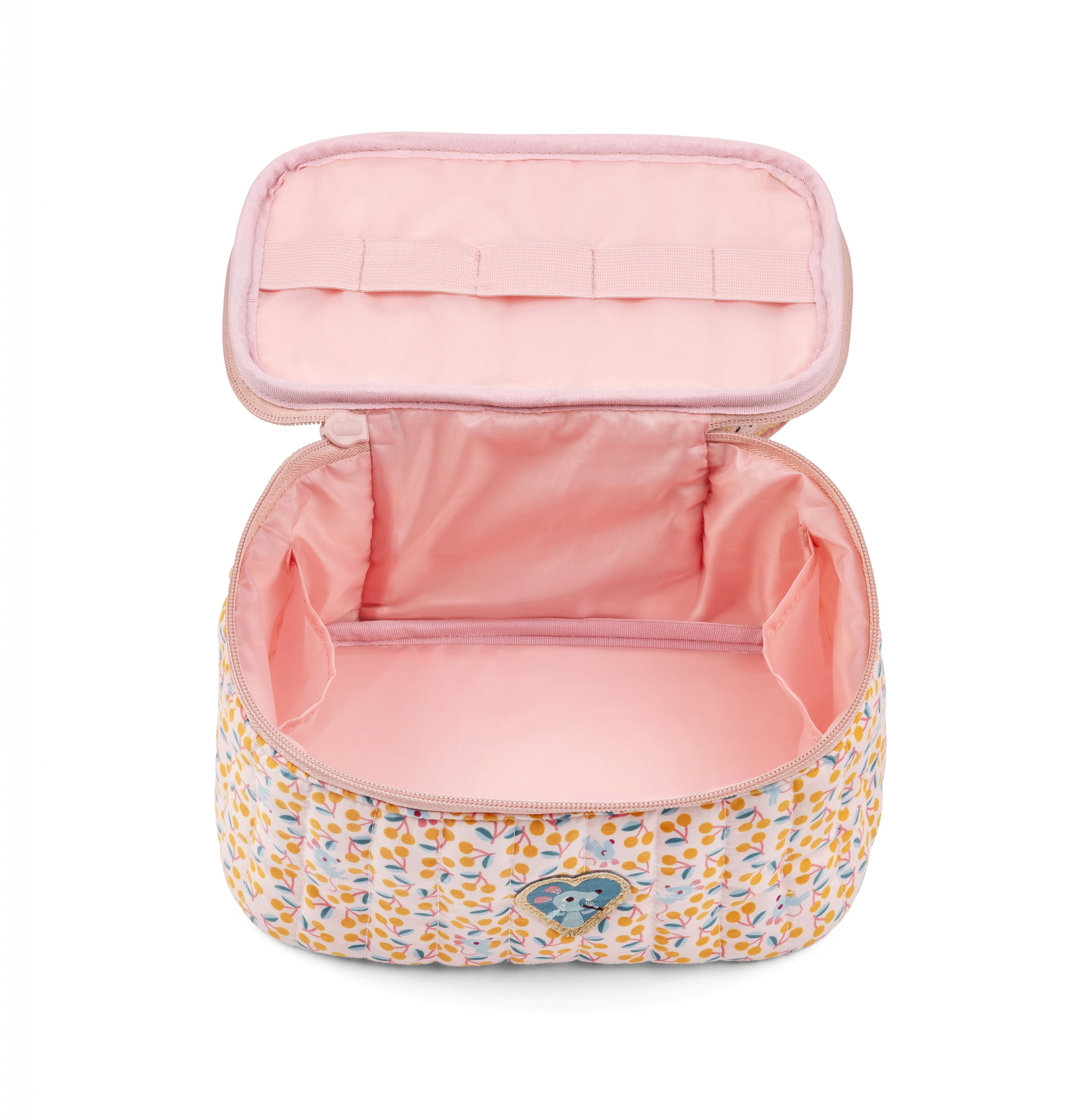 Tato dětská toaletní taštička je vhodná pro děti od 2 let a okouzlí svou trendy růžovou barvou a potiskem třešniček. Tato kosmetická taštička je vyrobená z měkkého a odolného polyesteru.