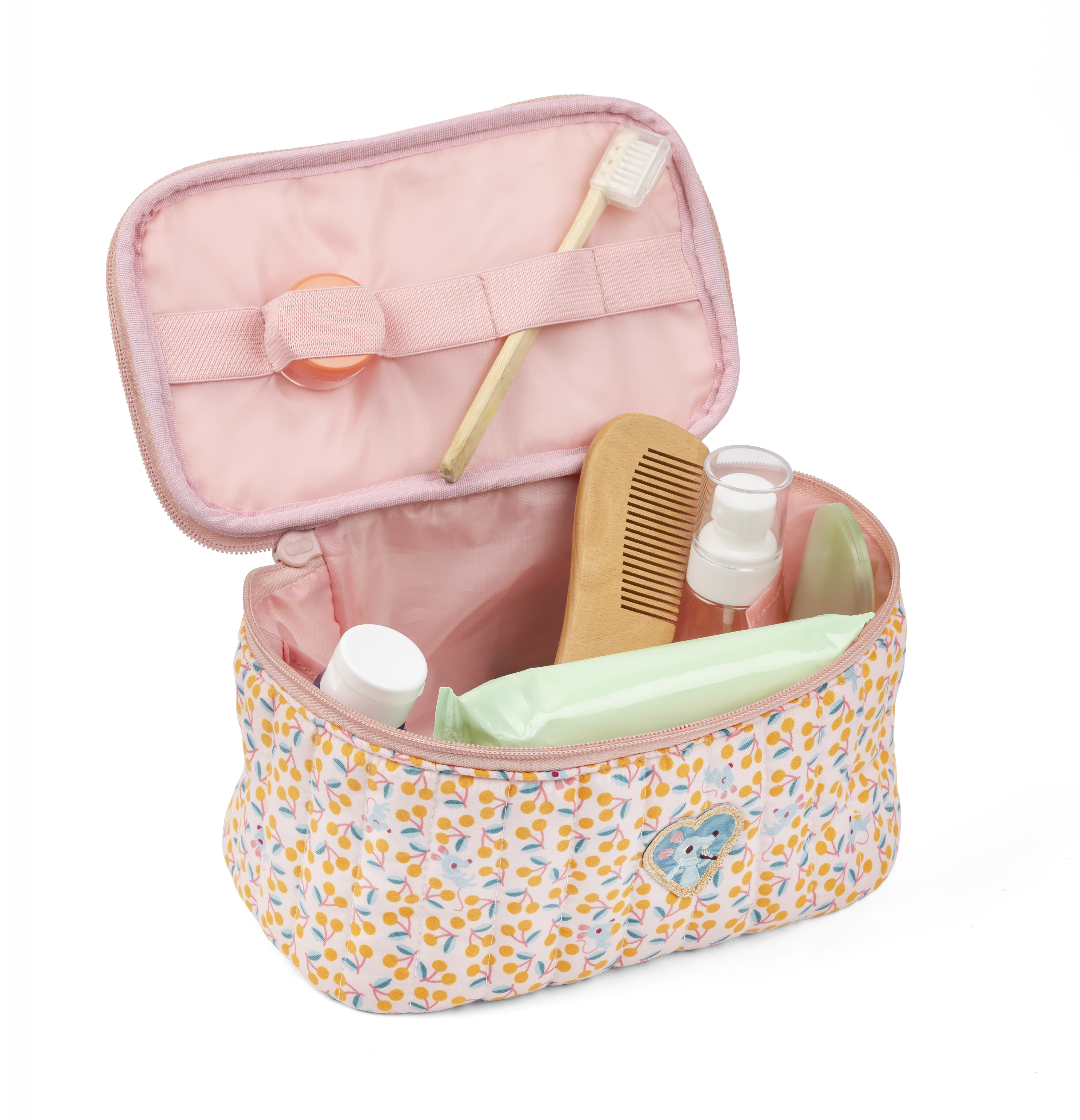 Široký zip nabízí rychlý přístup k obsahu: každé dítě si své toaletní potřeby snadno najde. Dvě vnitřní boční kapsy a elastické pásky nahoře zaručují skvělou organizaci: zubní kartáčky, sponky do vlasů, krémy a tuby všech velikostí mají své místo. S rozměry 21 x 14 x 13 cm se tato malá toaletní taštička snadno vejde do cestovní tašky nebo kufru na dovolenou. Snadno se udržuje a lze ji prát v pračce na 30 °C na jemný cyklus.