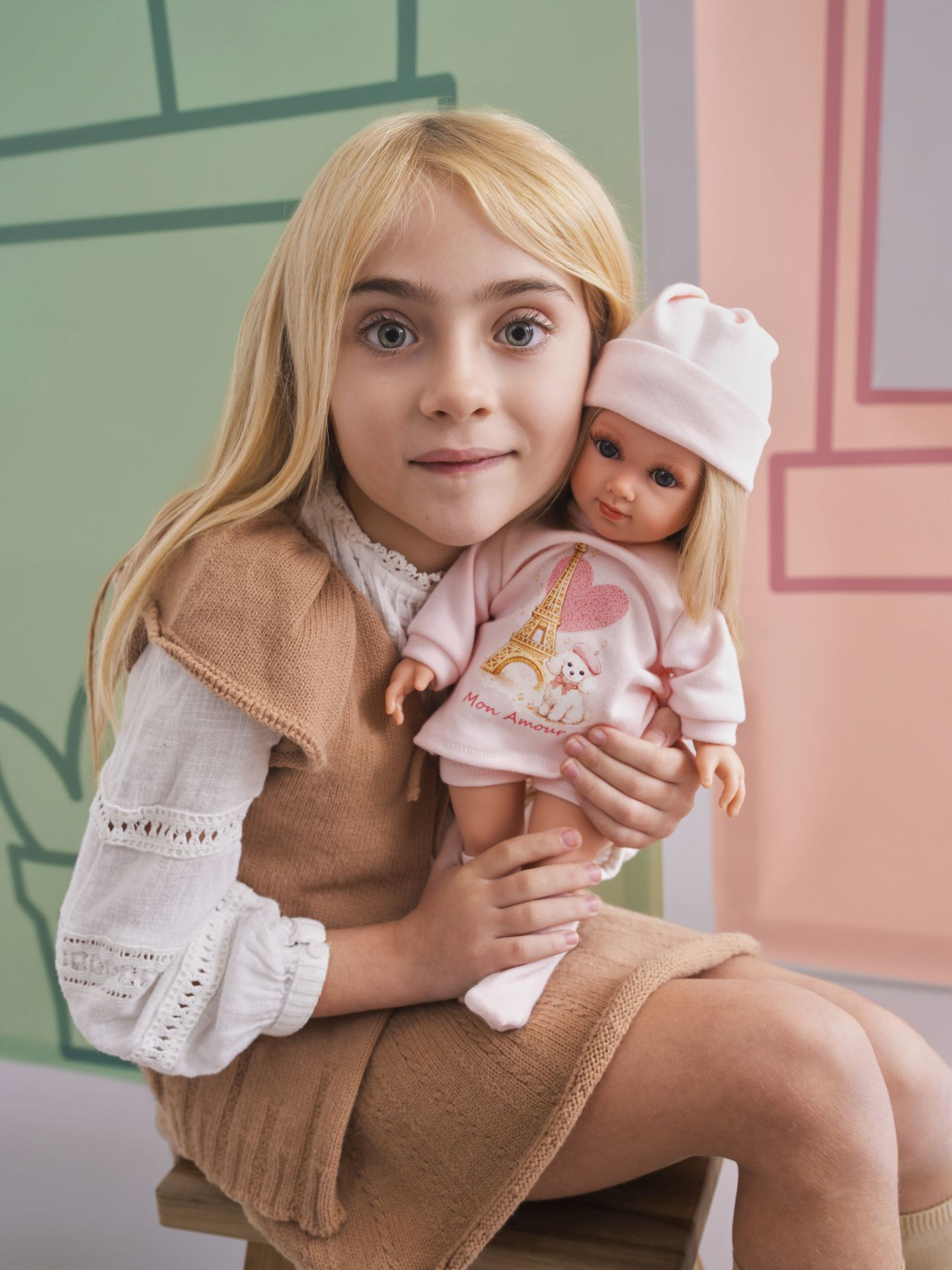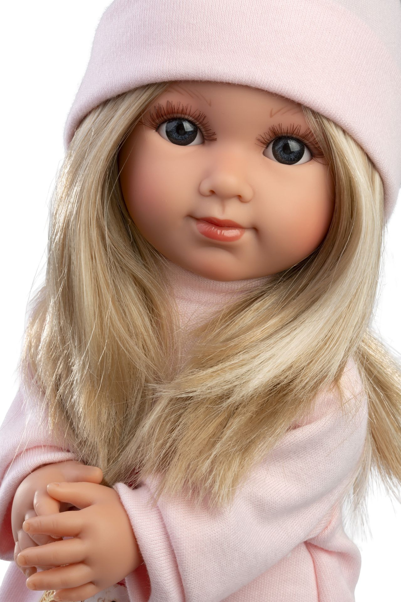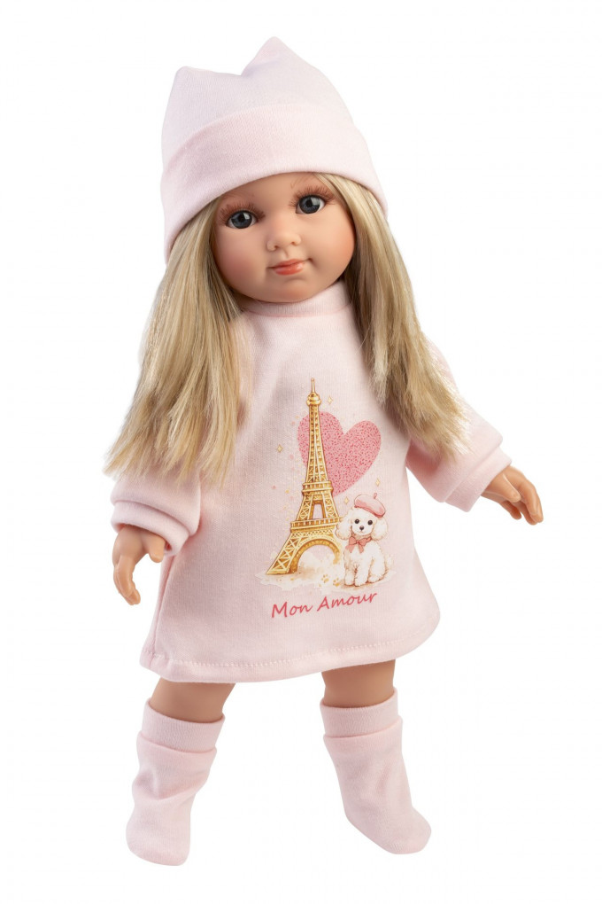 Panenka s měkkým látkovým tělem a s vlásky po celé hlavě, podobající se malé slečně. Velikost panenky je 35 cm. Ručně vyrobeno ve Španělsku, baleno v dárkové krabici.
