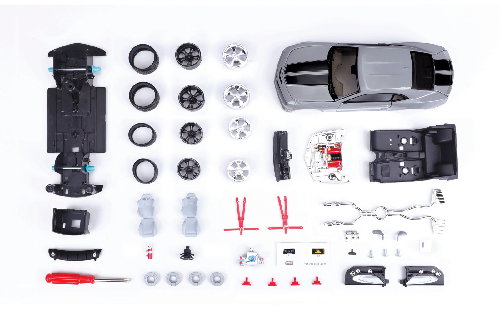 Skládací model auta v měřítku 1:24. Model auta se skládá podle obrázkového návodu, který je součástí stavebnice. Jednotlivé části se spojují tlakem bez pomoci lepidla. Kovové části jsou natřené netoxickými barvami. Není potřeba je dobarvovat. Součástí balení je šroubovák. Balení obsahuje 42 dílů.