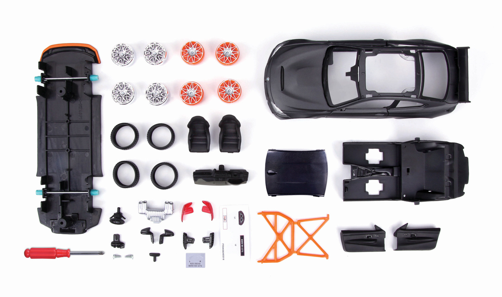 Skládací model auta v měřítku 1:24. Model auta se skládá podle obrázkového návodu, který je součástí stavebnice. Jednotlivé části se spojují tlakem bez pomoci lepidla. Součástí balení je šroubovák. Balení obsahuje 37 dílů. Model má otvírací dveře. Kovové části jsou natřené netoxickými barvami. Určeno pro děti od 8 let.
