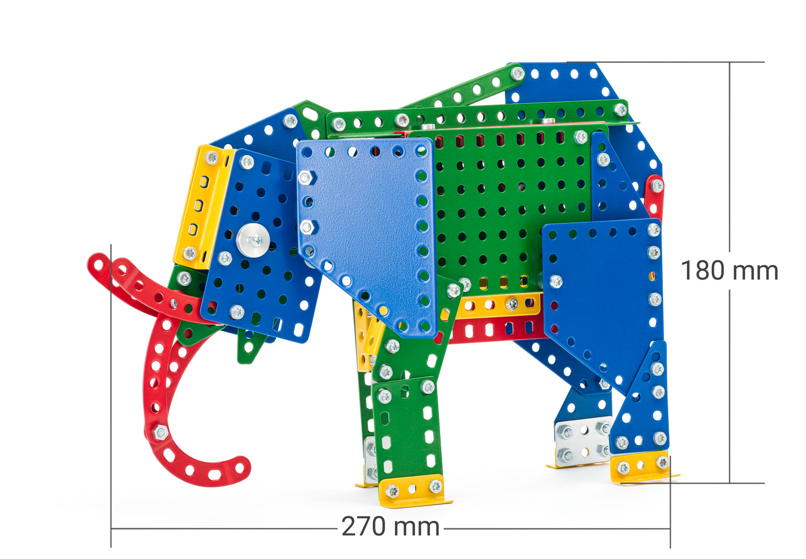 Stavebnice Merkur pro děti od 5 let obsahuje potřebné součástky pro sestavení modelu slona. V balení najdete podrobný návod a kvalitní kovové díly, které se snadno spojují šroubky. Stavebnici můžete sestavit podle přiloženého návodu nebo čistě podle svých představ. Se sestavenými modely si lze hrát, jsou velmi odolné. Stavebnice je určená pro děti od 5 let.
