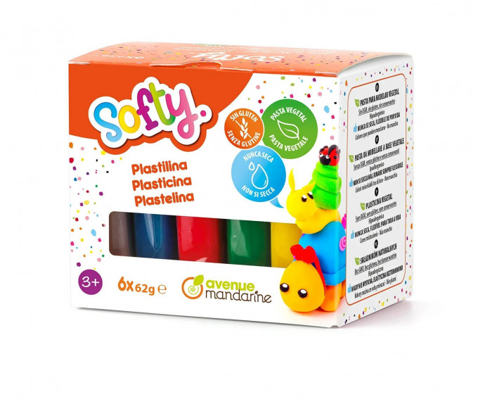 Tato sada obsahuje šest válečků měkké modelovací hmoty (každý 62 g) v základních barvách: bílá, modrá, červená, zelená, žlutá a oranžová. Měkká hmota je tvárná i pro malé ručičky. Modelovací hmota Softy zůstává díky svému složení pružná a nevysychá, což umožňuje opakované použití podle potřeby. Díky pevné konzistenci se s modelínou dobře pracuje, aniž by znečišťovala ruce.