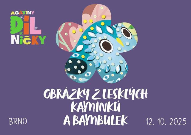 Zveme vás do Agátiny kreativní dílničky. Přijďte si dotvořit obrázek na kvalitním kartonu pomocí barevných bambulek a samolepicích kamínků. Po dokončení obrázků můžete nalepit háček na zadní stranu a zavěsit hotové dílko na zeď v dětské pokojíku.