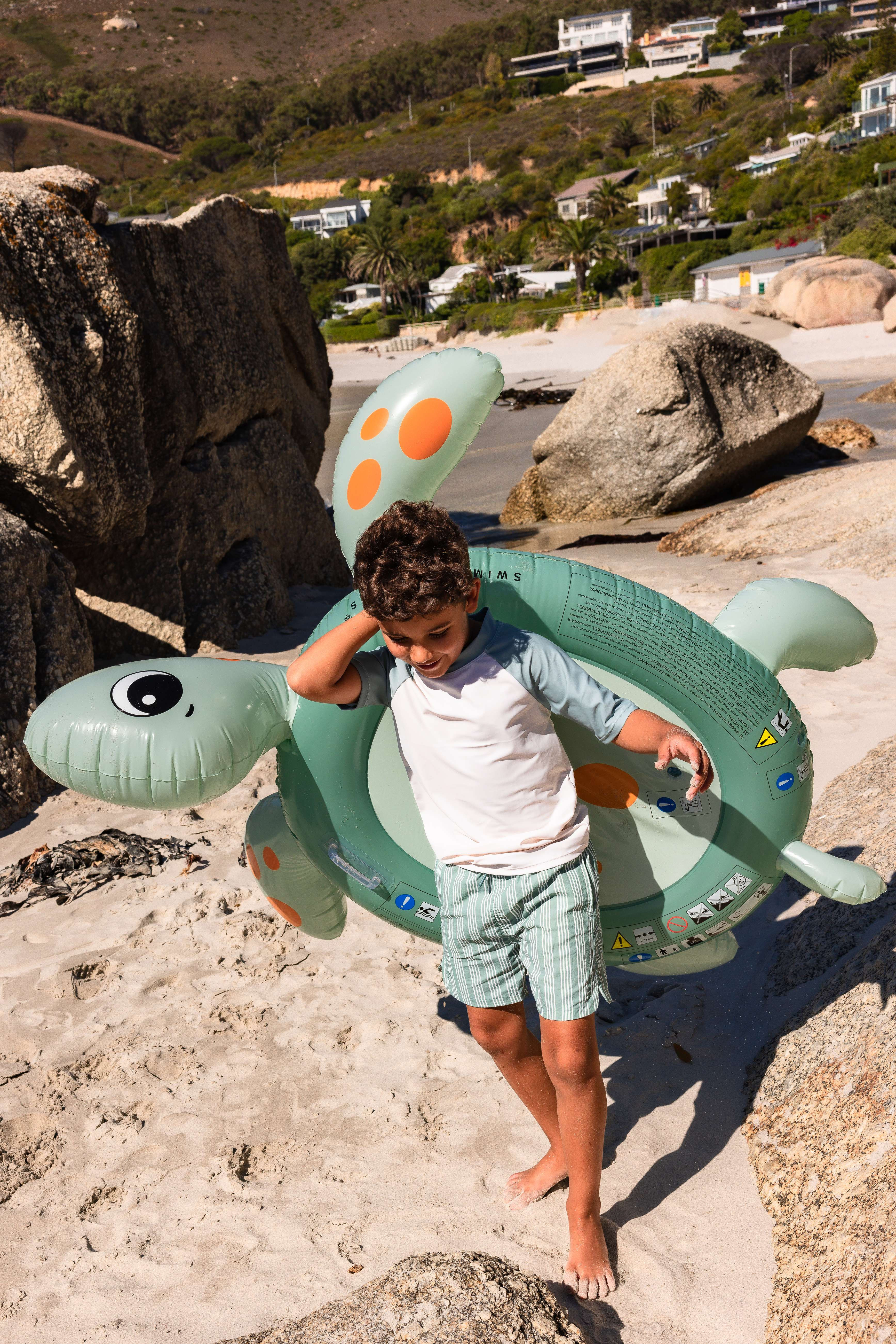 Někdy děti ve vodě nechtějí jen plavat, chtějí objevovat, hrát si a mít něco „svého“. Nafukovací lehátko ve tvaru želvy Swim Essentials jim přesně tohle nabízí. Díky originálnímu tvaru se z obyčejného koupání stává malé dobrodružství, při němž se děti mohou plavit na vlastním zvířecím parťákovi.