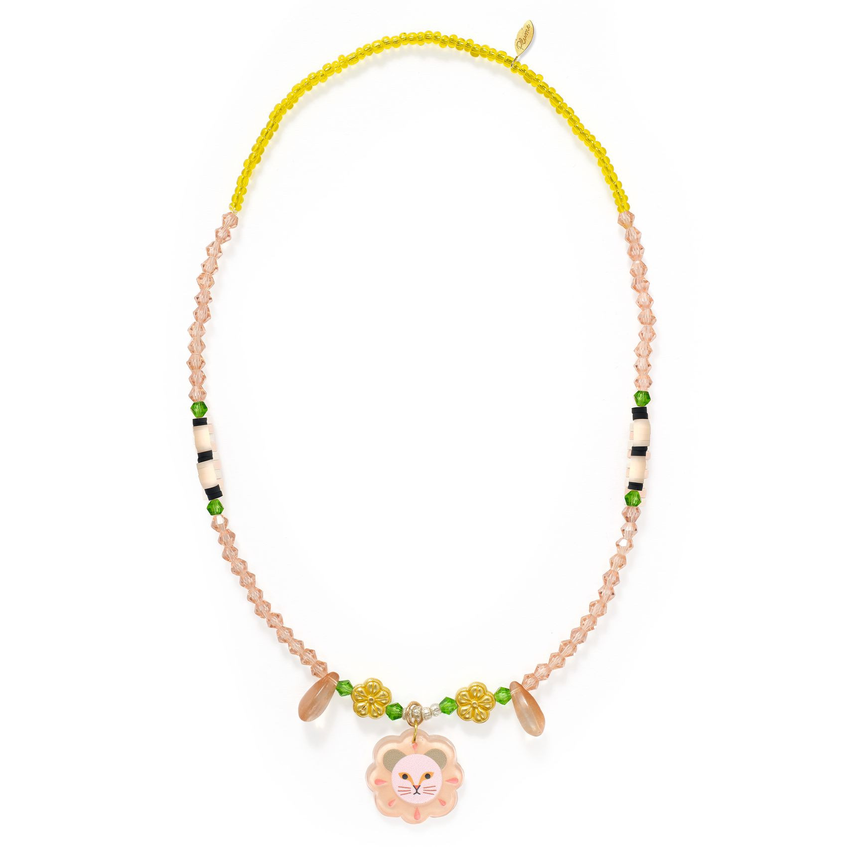 Exotický náhrdelník Déborah je jako stvořený pro malé parádnice od 3 let. Je vyroben z lehkých akrylových korálků a dozdoben třemi krásnými přívěsky, majestátním lvem a dvěma květinami. Korálky jsou navlečeny na dvojité elastické niti, díky které se náhrdelník snadno nasazuje a pohodlně nosí.