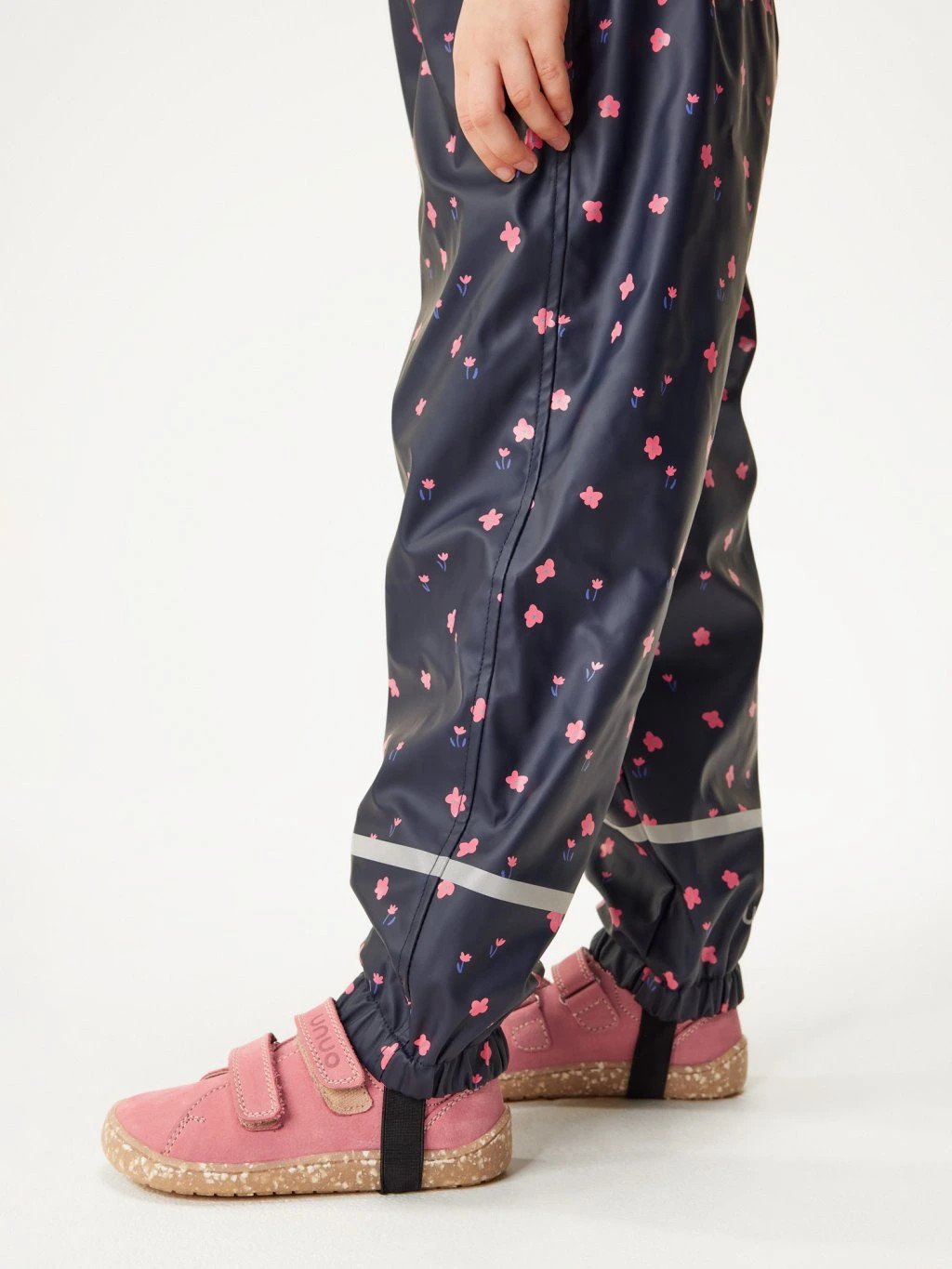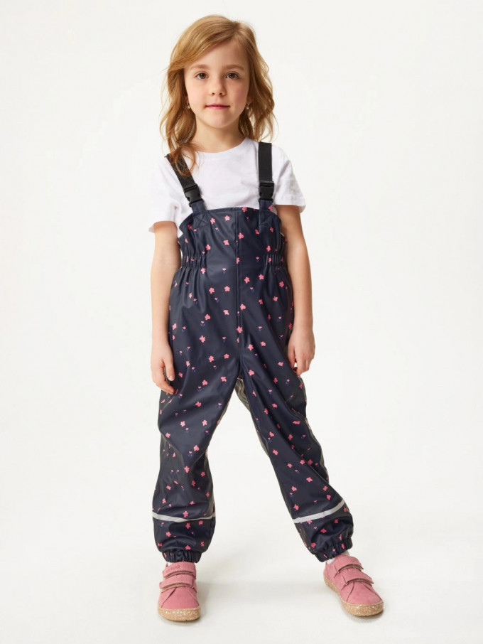Lacl s nastavitelnými kšandami umožňuje dokonalé přizpůsobení, a gumičky v nohavicích se postarají o to, aby voda ani bláto nepronikly dovnitř. Kalhoty jsou vybaveny reflexními prvky, které zvyšují bezpečnost dětí i za zhoršené viditelnosti. Jemný květinový vzor potěší malé holčičky i větší slečny.