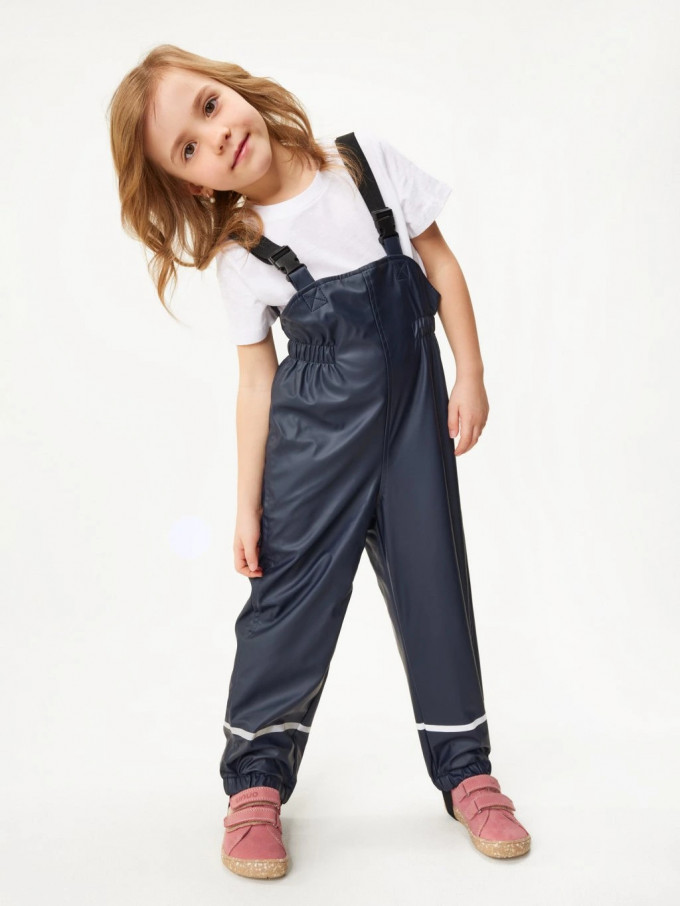 Pogumovaný materiál s pečlivě zatavenými švy nepropustí vodu, takže děti mohou bez obav běhat po mokré trávě nebo skákat v kalužích. Uvnitř je jemná fleecová podšívka, která udržuje teplo i v chladném počasí, zatímco pružné lemy na nohavicích zabraňují pronikání vlhkosti.