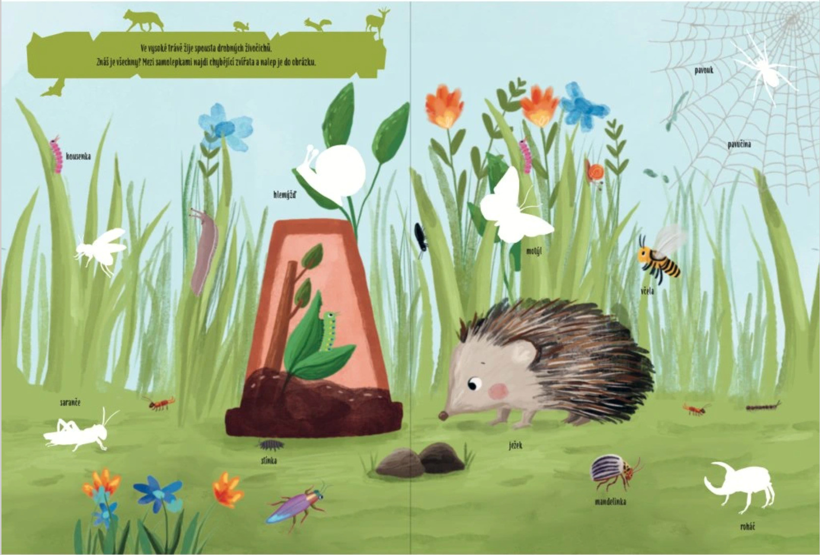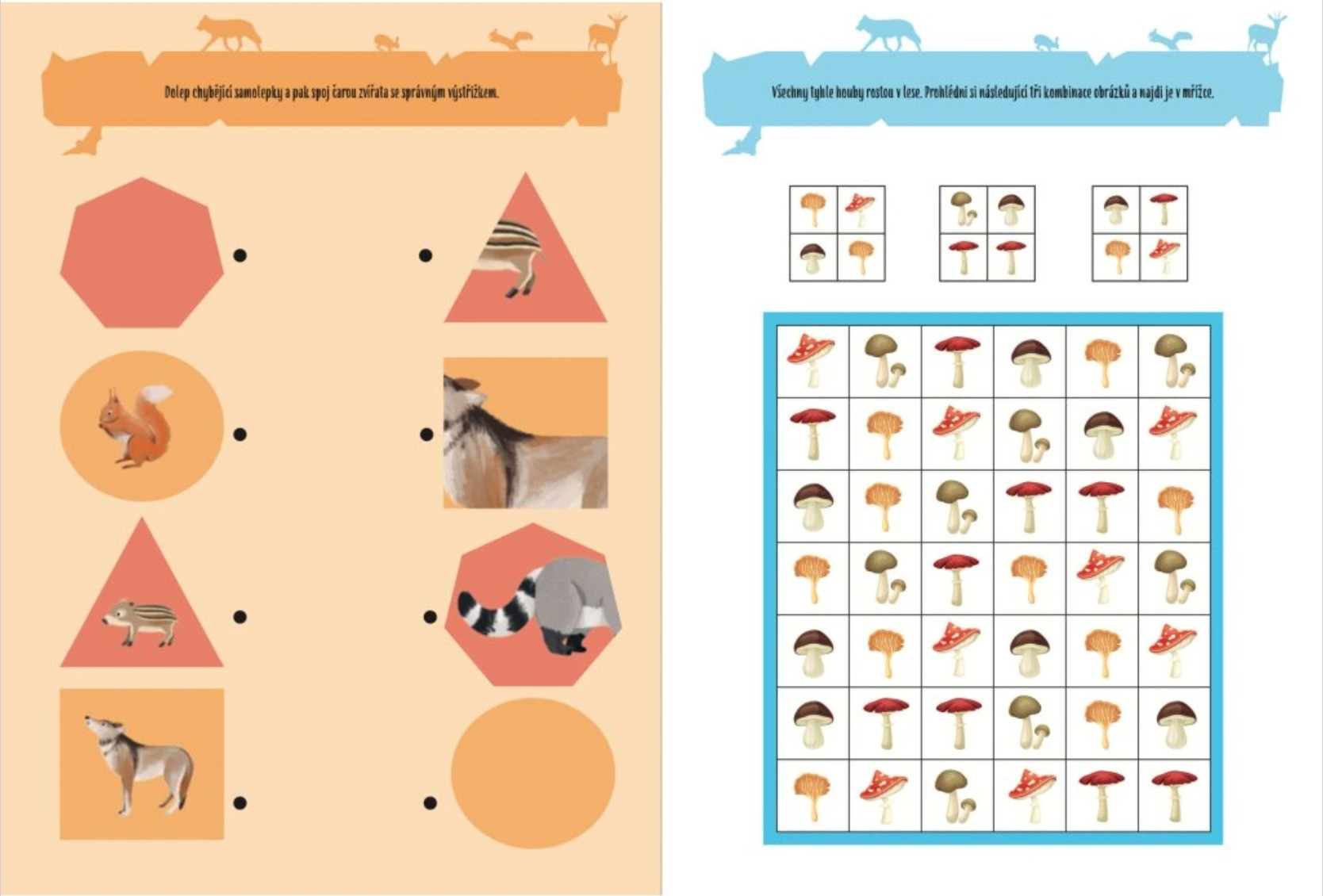 Na každé stránce děti čekají úkoly a samolepky, které se doplňují do obrázků. Nejde jen o prohlížení, ale o aktivní hledání správných řešení, poznávání nových zvířat a plnění jednoduchých výzev. Děti si tak přirozeně rozvíjí soustředění, logické myšlení i jemnou motoriku.