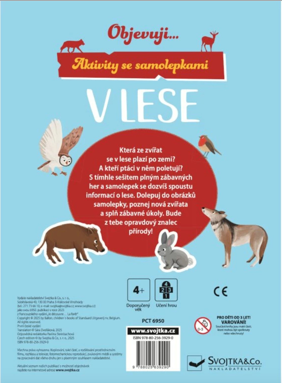 Velkou výhodou jsou znovupoužitelné samolepky, díky nimž se děti ke knížce mohou vracet stále znovu. Ideální společník na doma, na cesty i na chvíle, kdy chceš děti zabavit smysluplnou a klidnou aktivitou.