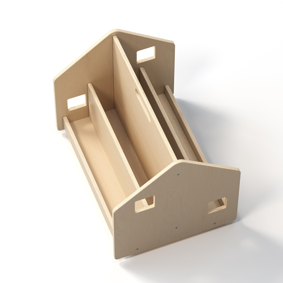 Oboustranná knihovna je praktické a bezpečné řešení pro dětský pokoj. Knihy jsou uloženy tak, aby děti viděly obálky a mohly si samy vybrat, co chtějí číst, což podporuje samostatnost a lásku ke čtení. Díky kolečkům knihovnu snadno přesunete kamkoli. Design je bezpečný, ekologický a přívětivý pro děti.