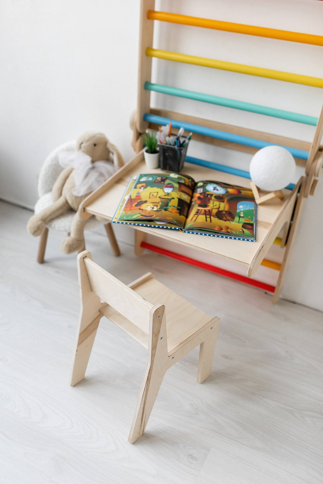 Speciální odnímatelný stoleček rozšiřuje možnosti lezecké sady BusyKids a umožňuje rychle proměnit hřiště na pracovní/studijní prostor.