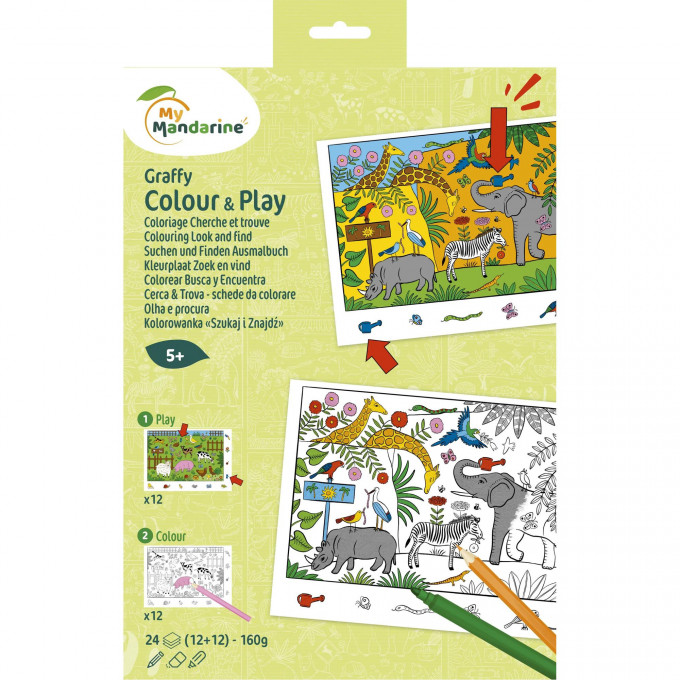 Balení obsahuje: 12 listů s barevnou hrou hledej a najdi a 12 listů s ilustracemi k vybarvování. Papír 60 g/m² je vhodný pro pastelky i fixy. Papír pochází z udržitelných zdrojů.