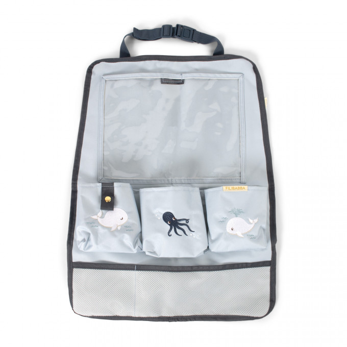 Jemné vyšívané detaily dodávají kouzlo, díky čemuž je nejen funkční, ale i stylový. Tento organizér je vyroben z odolné polyesterové tkaniny v recyklované kvalitě. Prozkoumejte kouzelný svět těsně pod hladinou. Zde se velryba Christian klouže a hraje si po boku své velké oceánské rodiny. Jemné proudy se vlní po klidném pozadí a unášejí vaše dítě do snových dobrodružství.