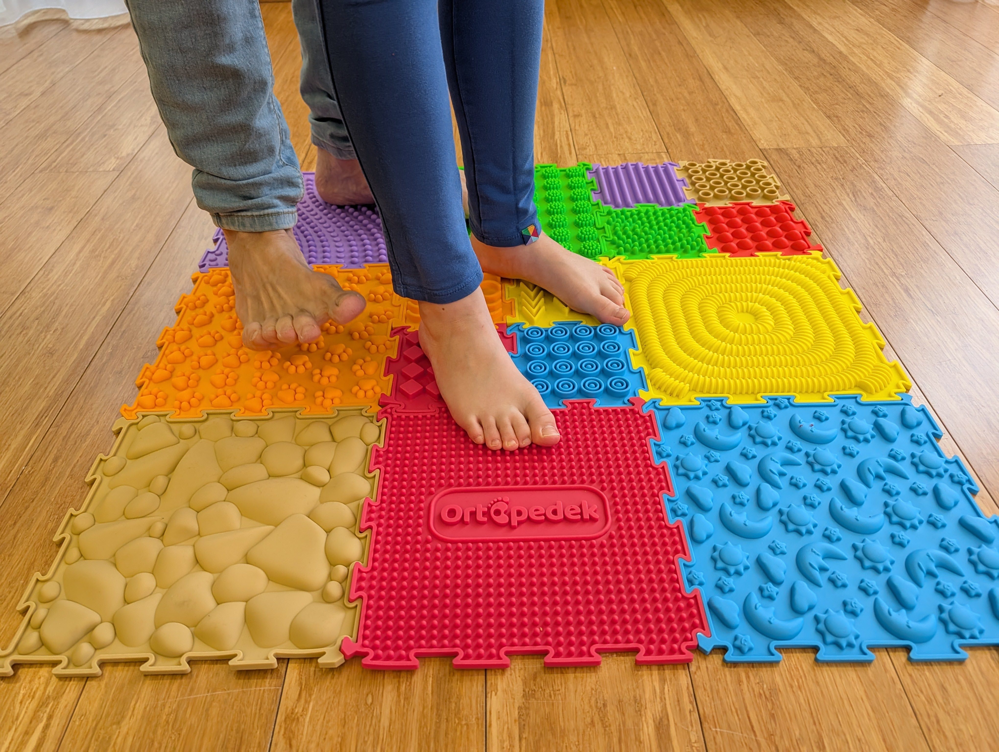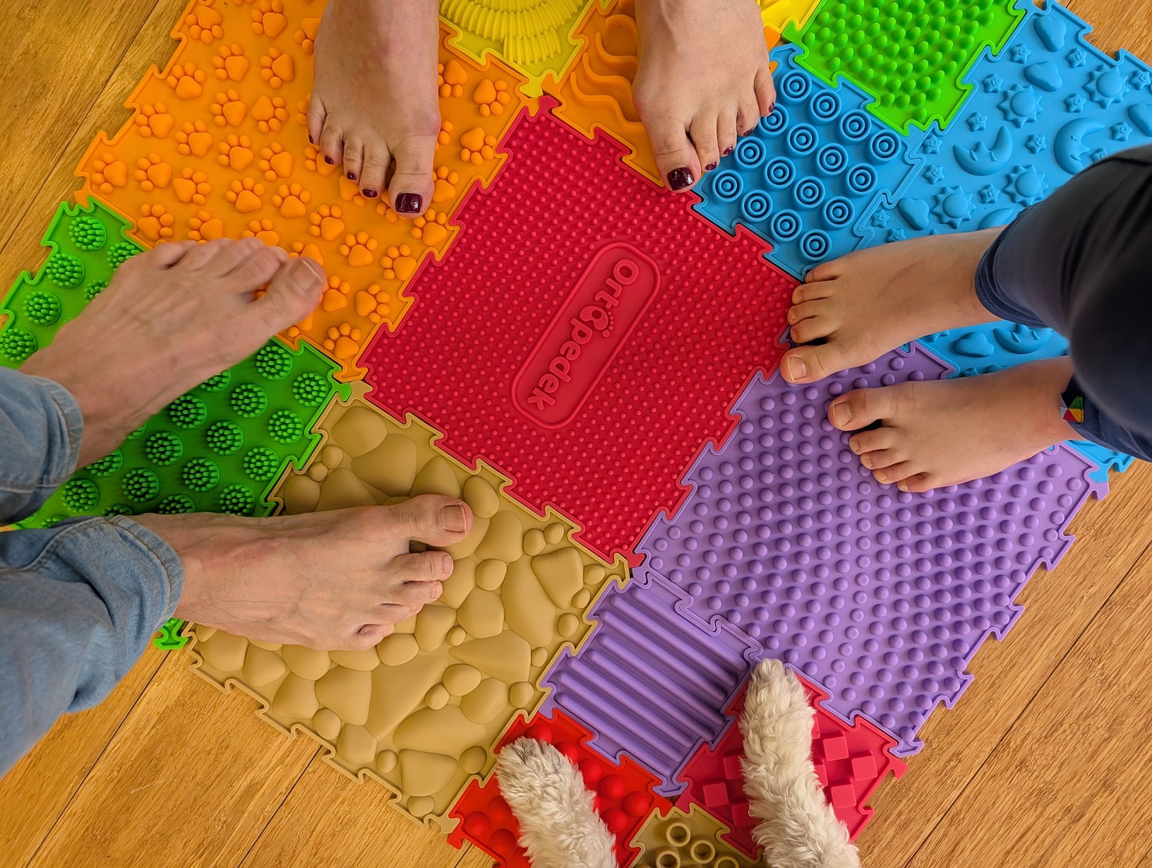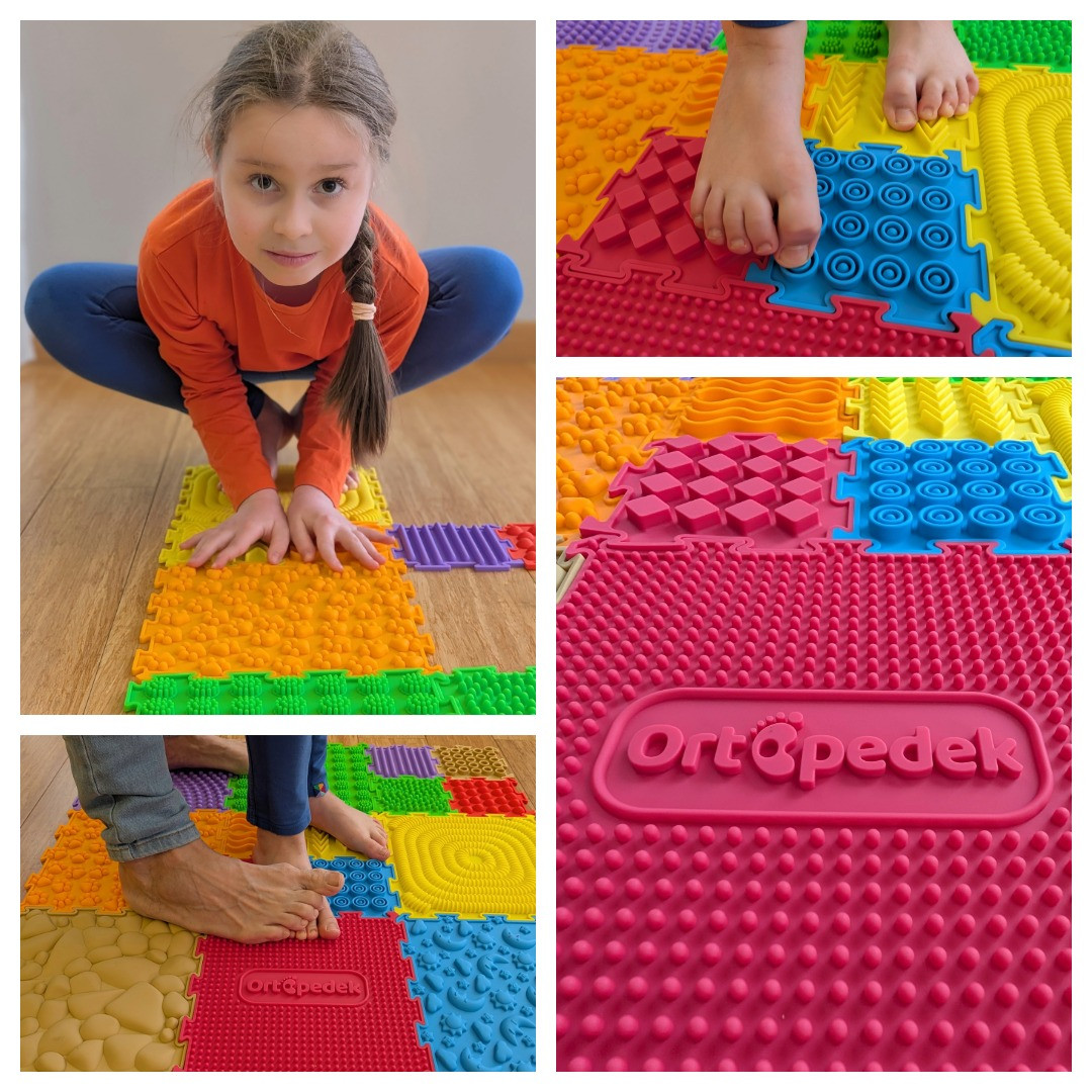 Podložky Ortopedek jsou navrženy s ohledem na děti a jejich správný vývoj. Každý díl má jinou barvu a jedinečnou texturu, což umožňuje komplexní senzorickou stimulaci a aktivaci svalů chodidel, které jsou zodpovědné za stabilitu a správné držení těla. Pravidelná chůze po podložkách jemně masíruje chodidla, posiluje klenbu a učí rovnováze. Pár minut hry naboso na podložkách je rychlá a domácí cesta ke zdravějším nohám, silnějším kloubům a rovnějšímu držení těla.