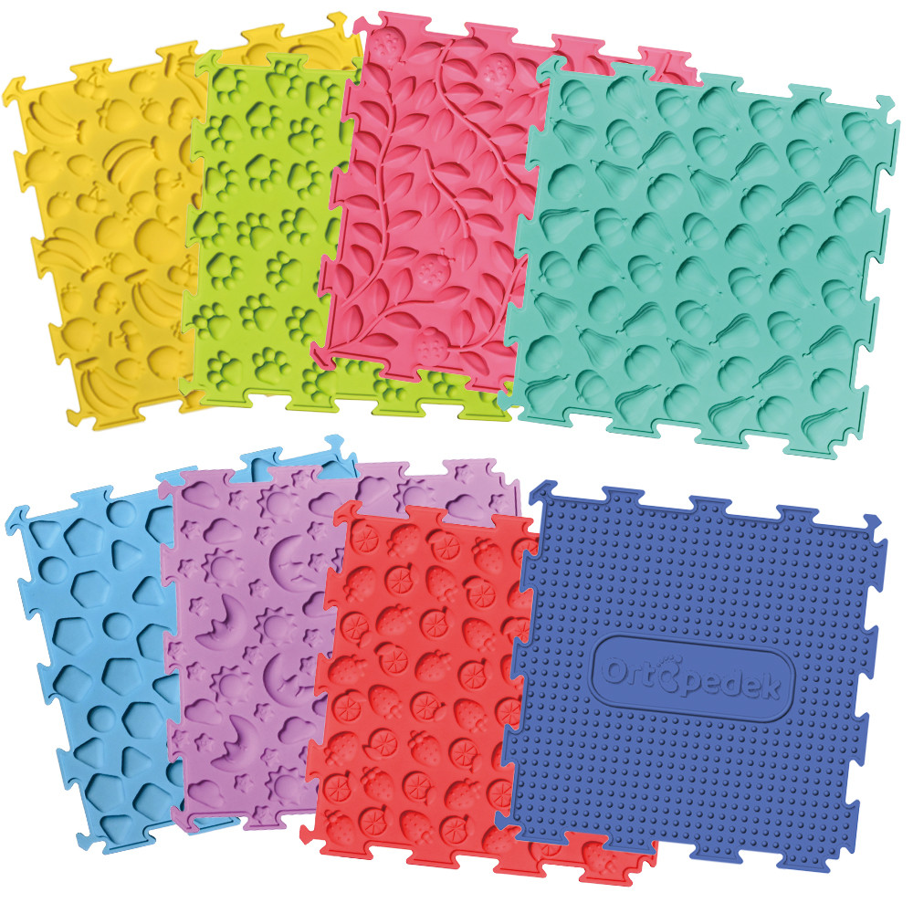 Sada osmi silikonových podložek Ortopedek, každá v jiné zářivé barvě a s unikátní texturou, jemně masíruje chodidla, posiluje klenbu a podporuje rovnováhu. Podložky zlepšují zdraví celého těla od chodidel až po páteř. Podložky jsou odolné a snadno se čistí, takže jsou ideální pro domácí použití, ve fyzioterapeutických ordinacích nebo ve školkách. Pár minut chůze naboso na podložkách Ortopedek je jednoduchý a efektivní způsob, jak podpořit zdraví nohou, posílit klouby a zlepšit držení těla a to vše v pohodlí domova.