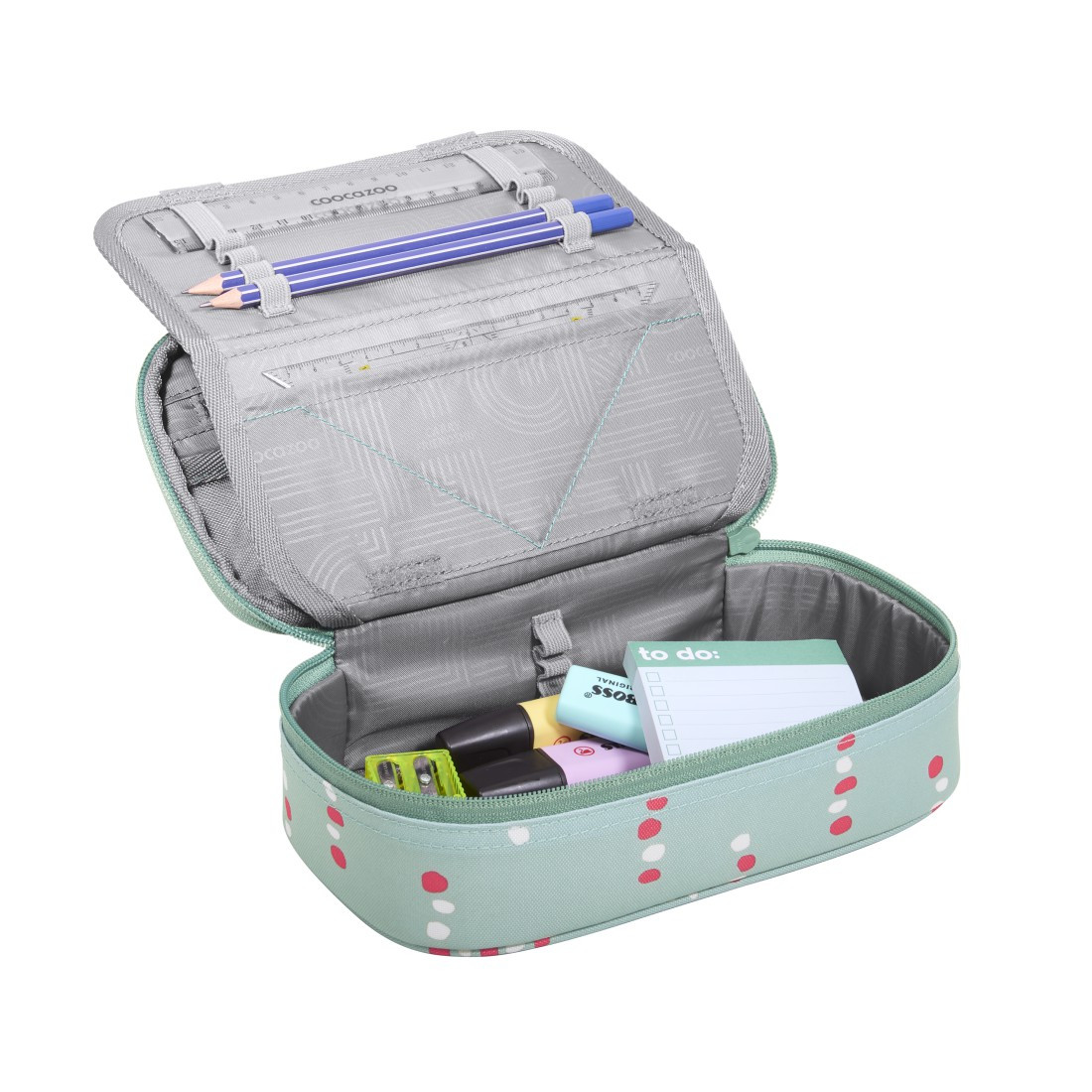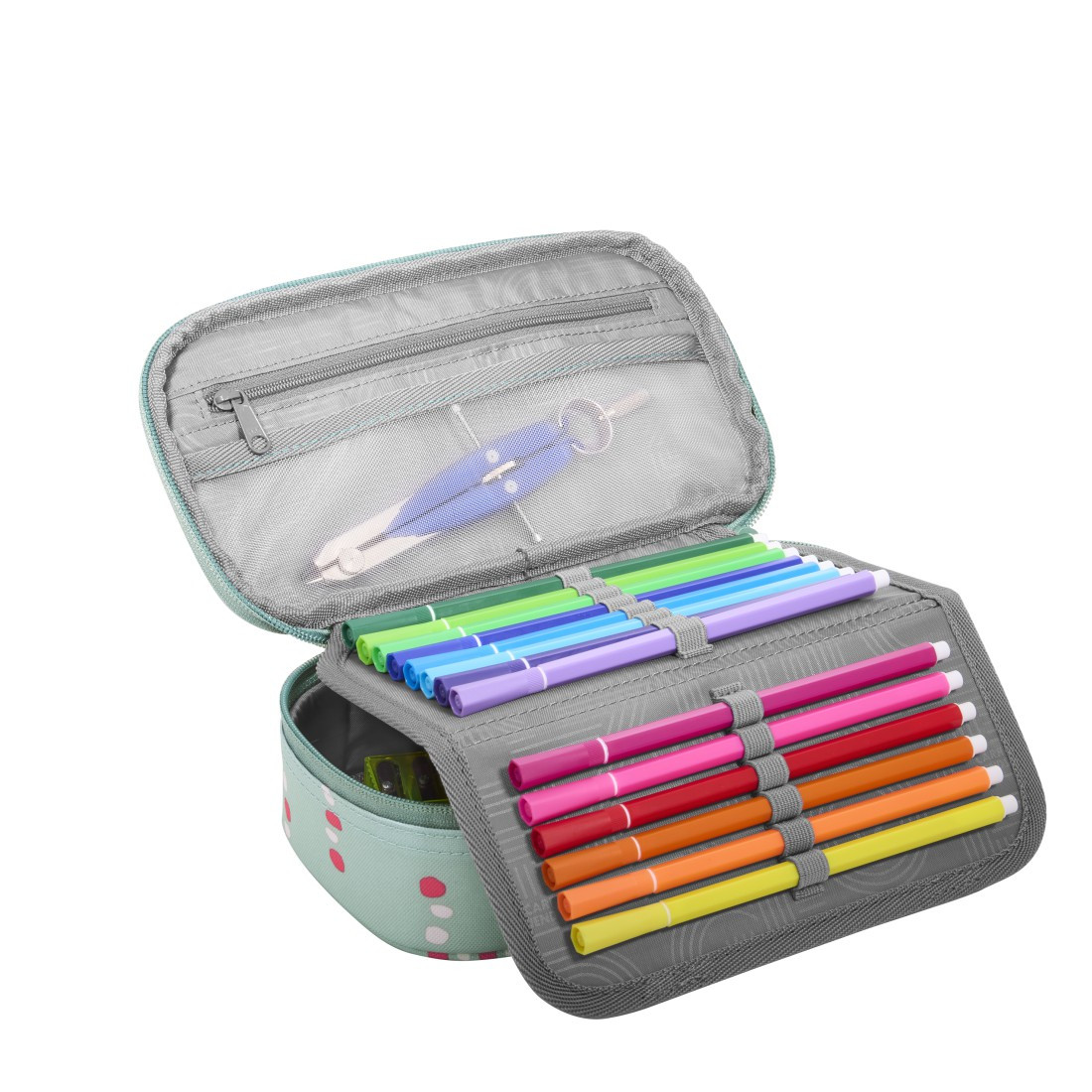 Prostorný penál pro uložení psacích potřeb, pravítek a dalších školních nebo osobních předmětů. Penál je uzavíratelný na zip. Uvnitř penálu najdete 21 poutek na pera a tužky pro přehledné upořádání.