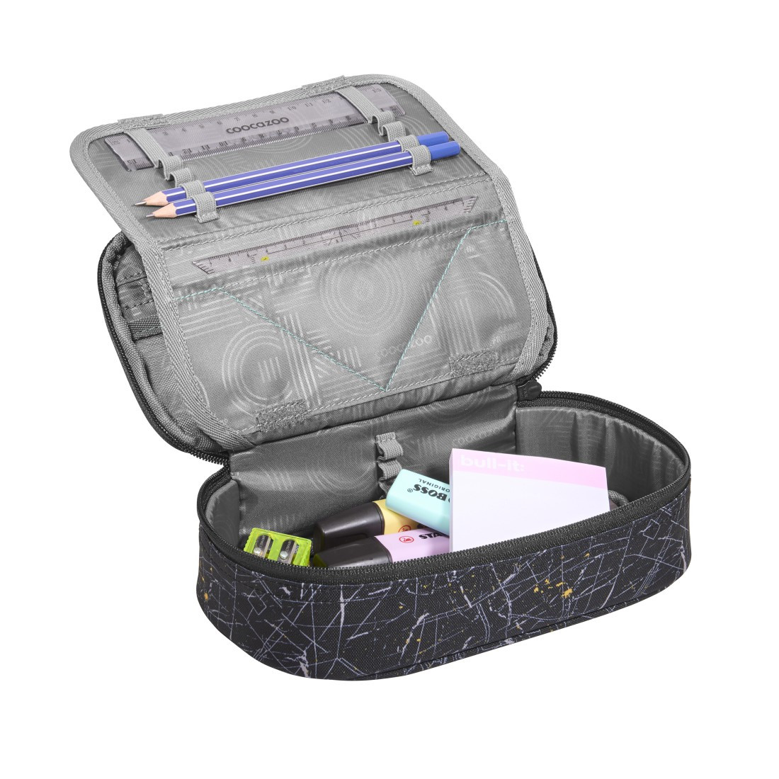 Prostorný penál pro uložení psacích potřeb, pravítek a dalších školních nebo osobních předmětů. Penál je uzavíratelný na zip. Uvnitř penálu najdete 21 poutek na pera a tužky pro přehledné upořádání.