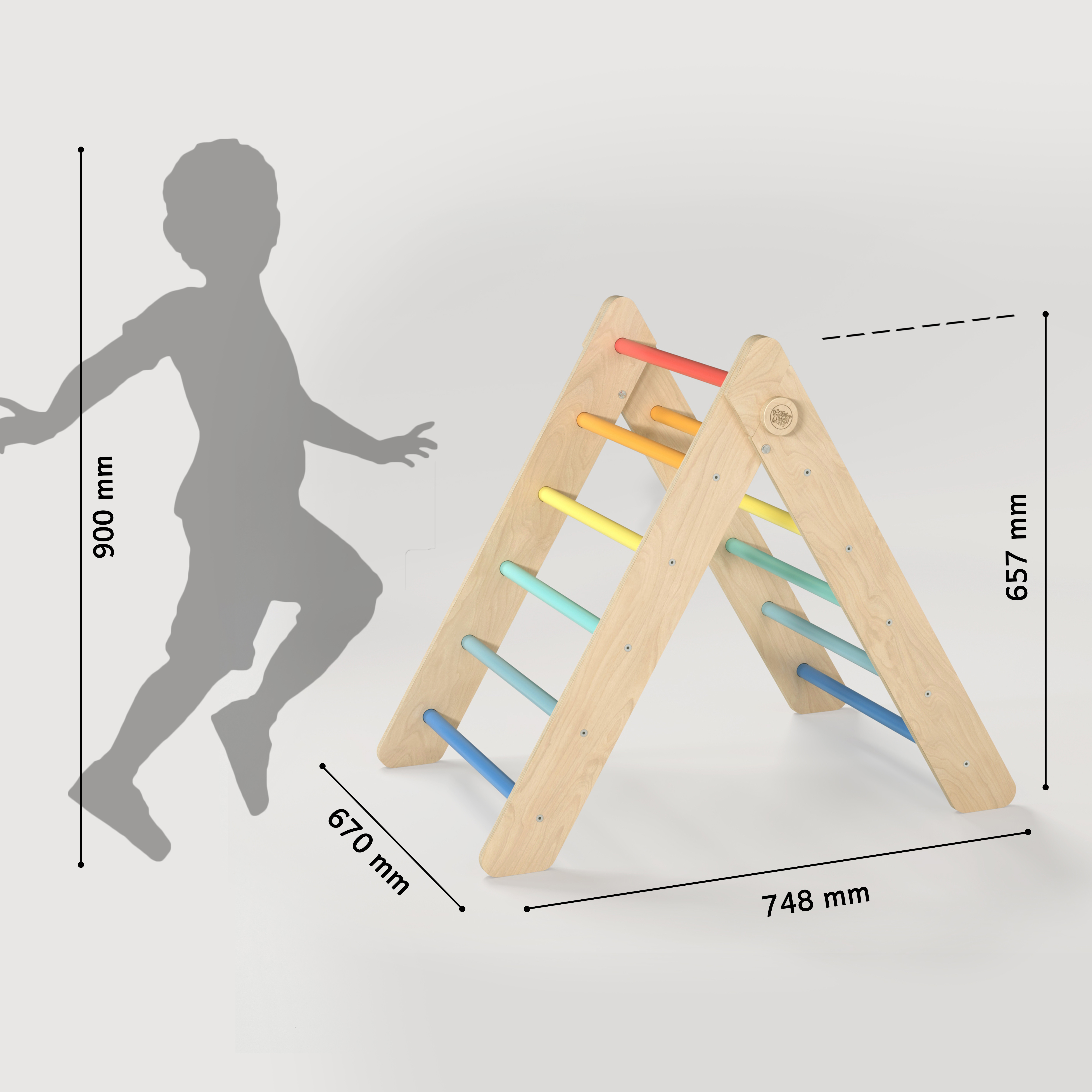 Piklelové trojuhelník je Montessori hračka pro rozvoj motorických dovedností pro děti od 1 roku. Piklelové trojuhelník podporuje rozvoj celkové motoriky, rovnováhy a odvahy u dětí a zároveň podporuje jejich nezávislost a kreativitu. Děti si mohou bezpečně hrát, zkoumat svůj pohyb a rozvíjet své dovednosti. Díky pevné konstrukci vydrží několik generací dětí.