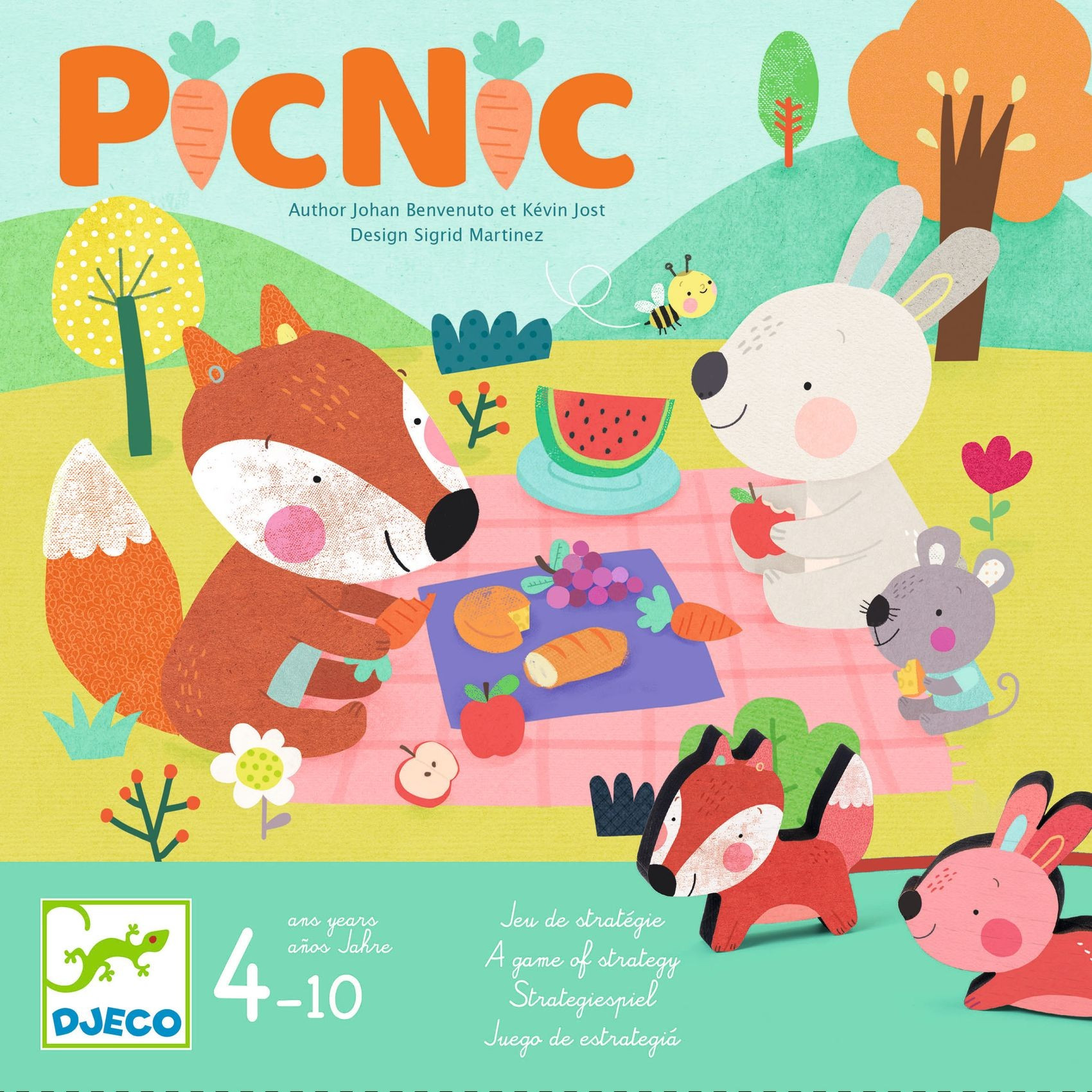 Strategická hra pro 2-4 hráče od 4 do 10 let. Králíci a lišky pořádají velký piknik. Místo již našli, ale ještě jim chybí jídlo. Rozhodli se ho hledat ve dvojicích. Aby se cestou neztratili, jsou spojeni provázkem. Každý tým králíka a lišky se pohybuje po dílcích a snaží se nasbírat co nejvíce jídla na piknik!