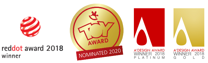 ⦁ Certifikovaný produkt s oceněním za design – Red Dot Design Award, Toy Award, A´DESIGN AWARD Gold a A´DESIGN AWARD Platinum