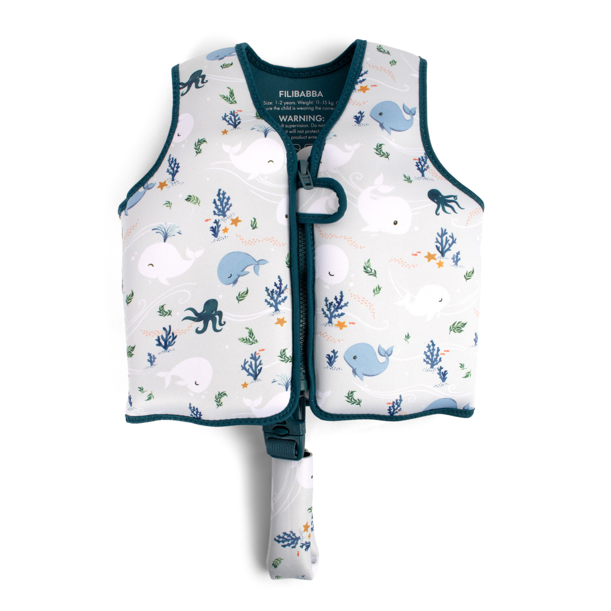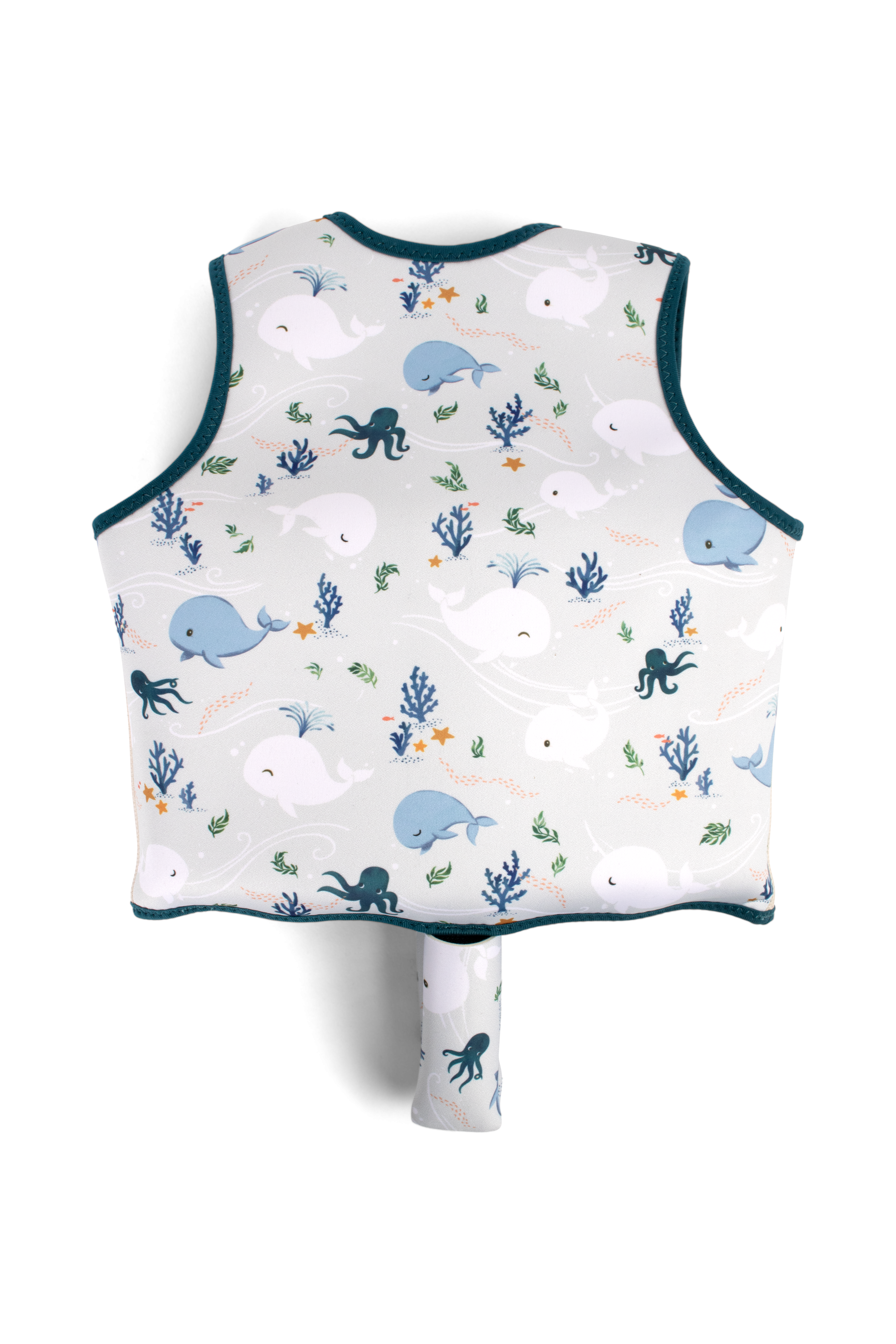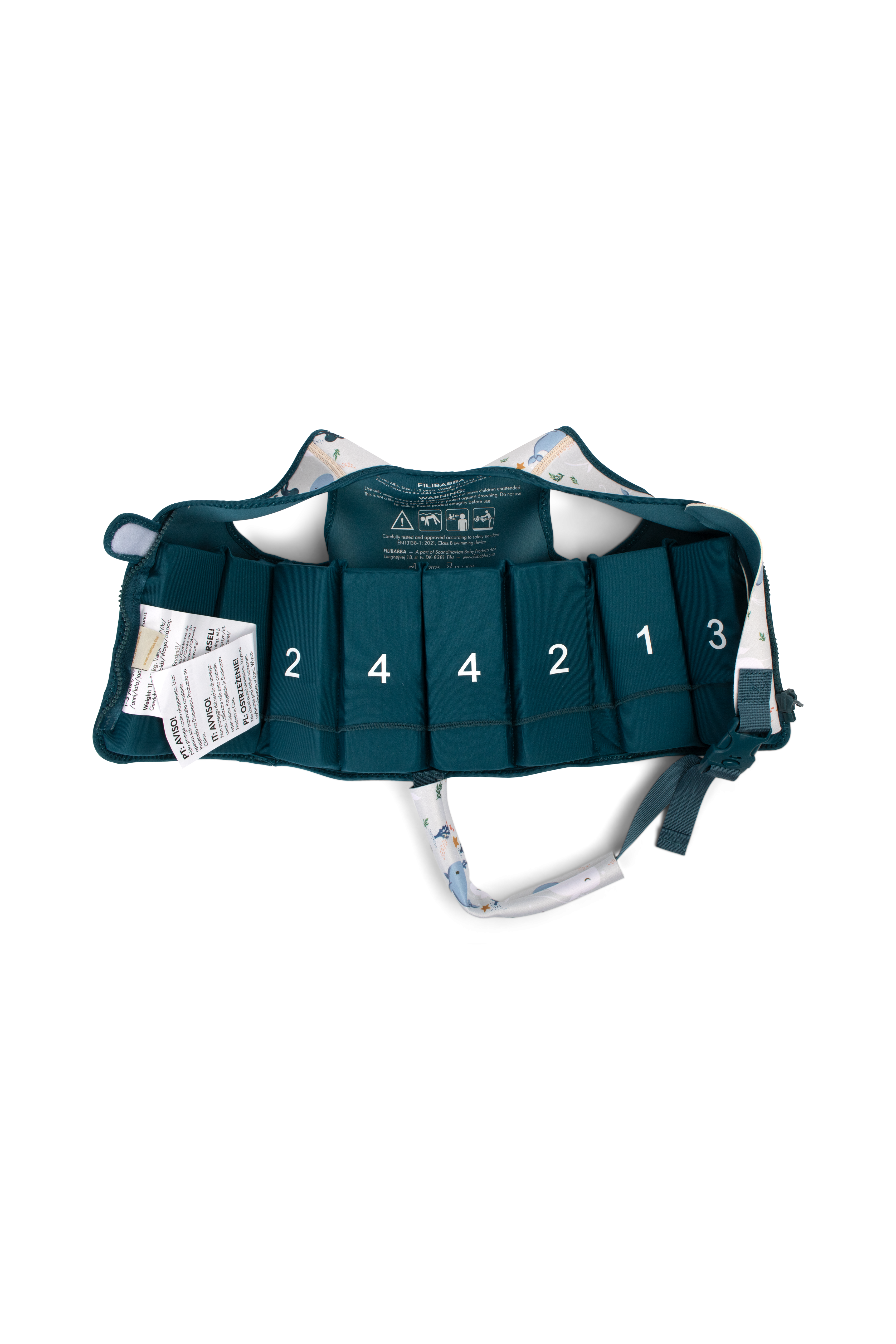 Plavecká vesta se přizpůsobuje vývoji vašeho dítěte a lze ji postupně upravovat. Jak si vaše dítě ve vodě získává větší jistotu, lze vestavěné plovákové prvky vyjmout – jeden po druhém, počínaje nejnižším číslem. Tím se postupně snižuje úroveň podpory, dokud vaše dítě nebude připraveno plavat samostatně. Poté lze vestu stále nosit jako dodatečnou UV ochranu během slunečných venkovních her. Prozkoumejte kouzelný svět těsně pod hladinou.
