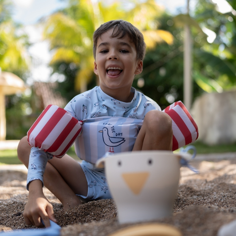 Dětská plavecká vesta Swim Essentials je skvělým parťákem pro děti, které už ve vodě tráví spoustu času a chtějí se posunout dál. Nabízí ideální rovnováhu mezi oporou a volností pohybu, takže si děti mohou užít plavání, skákání i hry s kamarády bez zbytečného omezení. Díky integrovyným rukávkům je vesta jedinou pomůckou, kterou svým dětem nasadíte, takže značně usnadňuje přípravu dětí na vodní radovánky.