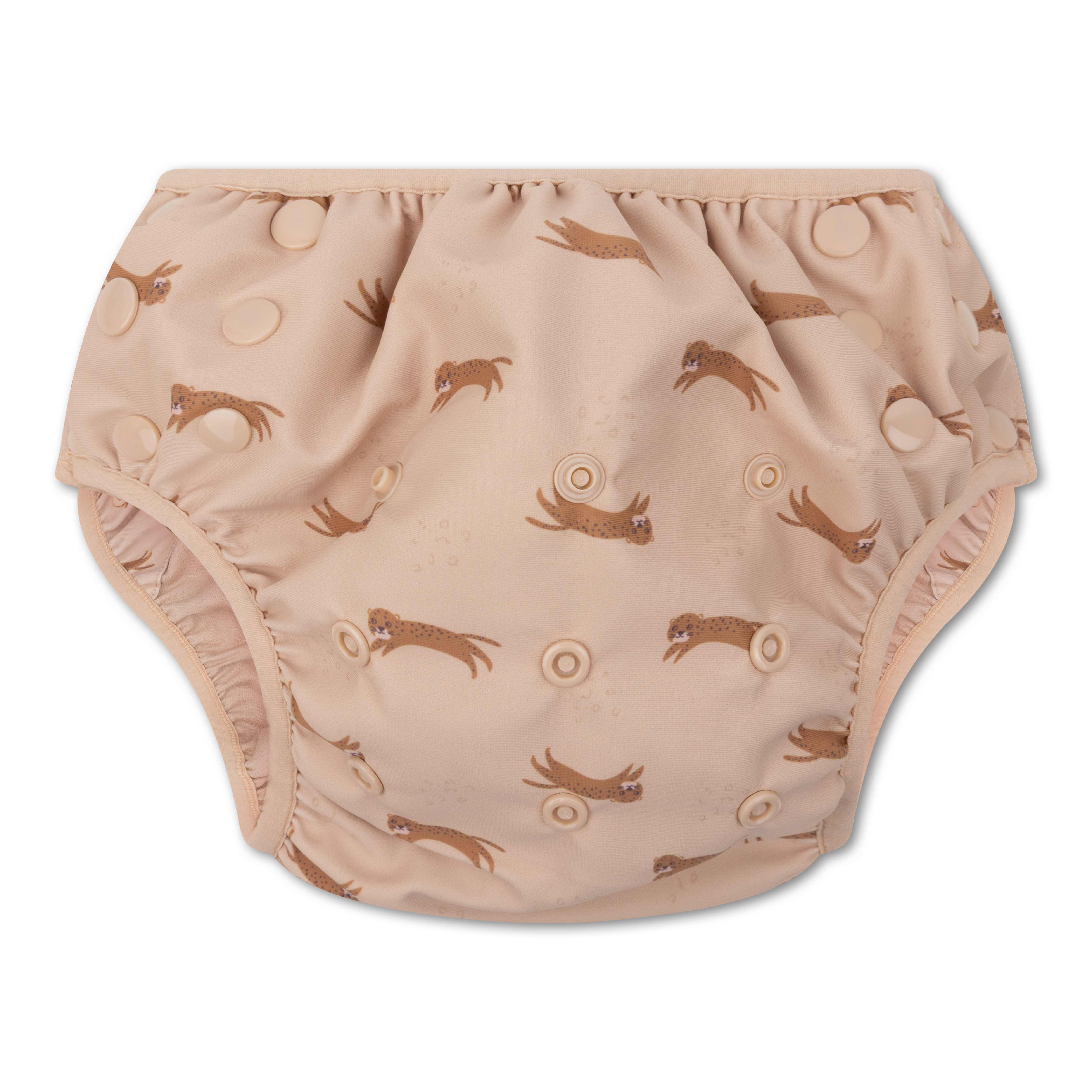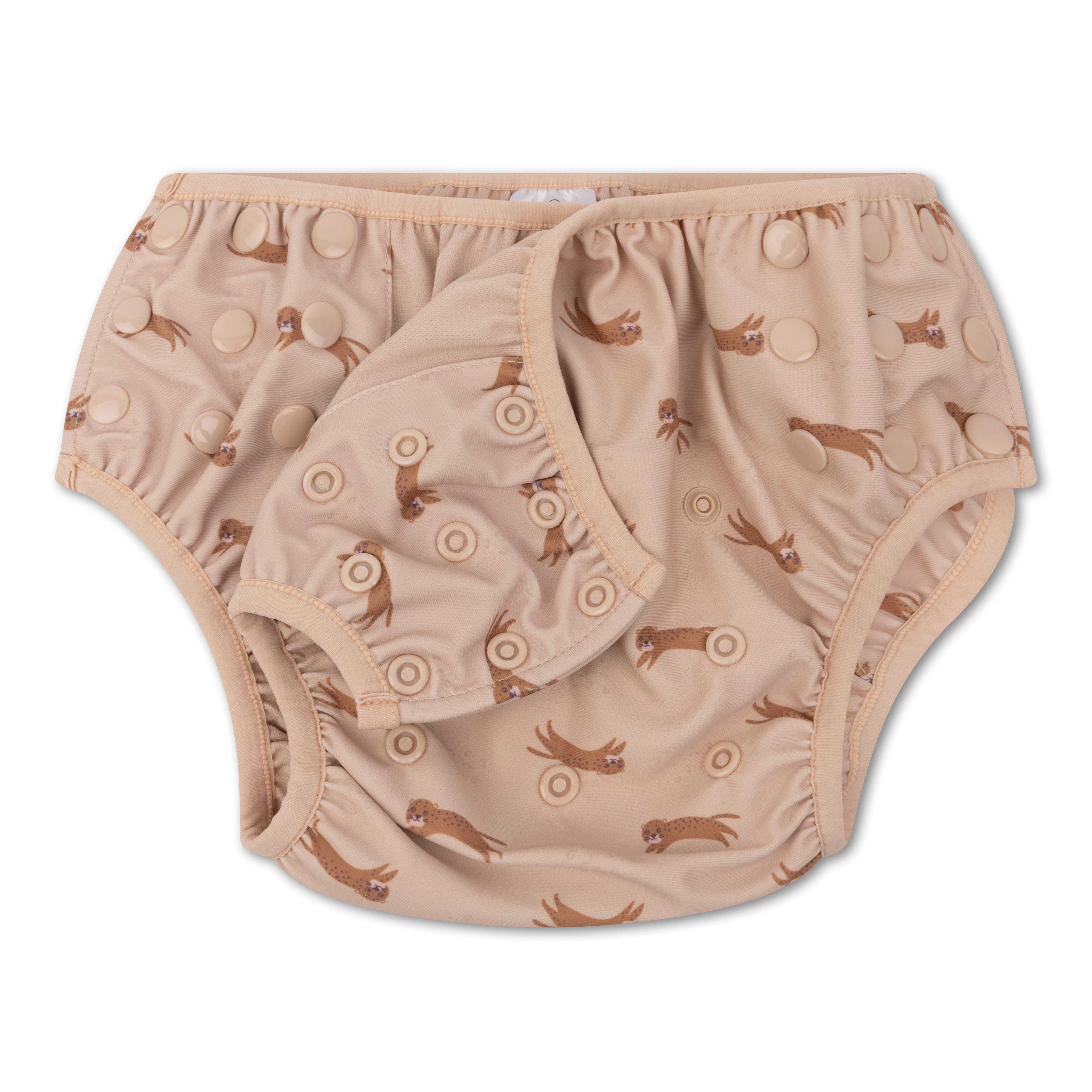 Plavky jsou vyrobené ze 100% polyesteru, který je lehký, měkký a rychleschnoucí, takže je ideální pro každodenní letní používání. Díky nastavitelným patentkám se snadno přizpůsobí rostoucímu dítěti (cca 0–3 roky) a vydrží déle než jednu sezónu. Elastické lemy kolem nožiček a pasu zajišťují pohodlné nošení a zároveň pomáhají udržet vše na svém místě. Samozřejmostí je také UV ochrana UPF 50+, která pomáhá chránit citlivou dětskou pokožku před slunečním zářením.