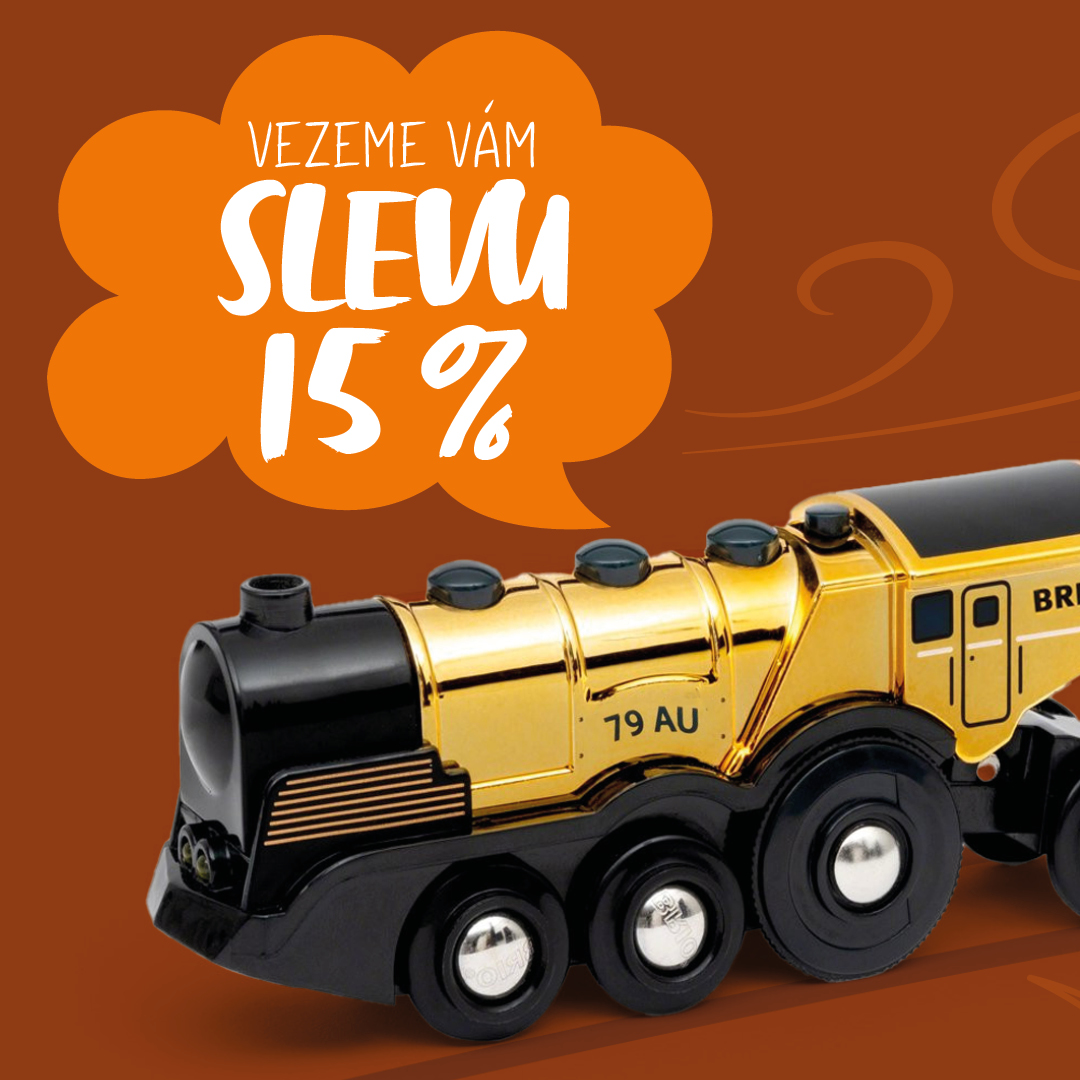 Akce BRIO sleva 15 % platí od 1. 10. do 31. 1. 2026 při nákupu jakýchkoliv produktů BRIO pouze online.