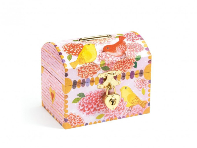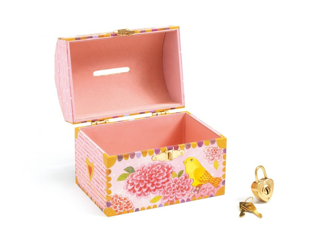 Krásná a praktická pokladnička pro děti ve tvaru truhličky je z kolekce doplňků do dětských pokojíků. Pokladnička uschová dětské úspory a zároveň se stane i pěknou dekorací. V této pokladničce mají děti své nastřádané mince bezpečně uložené.