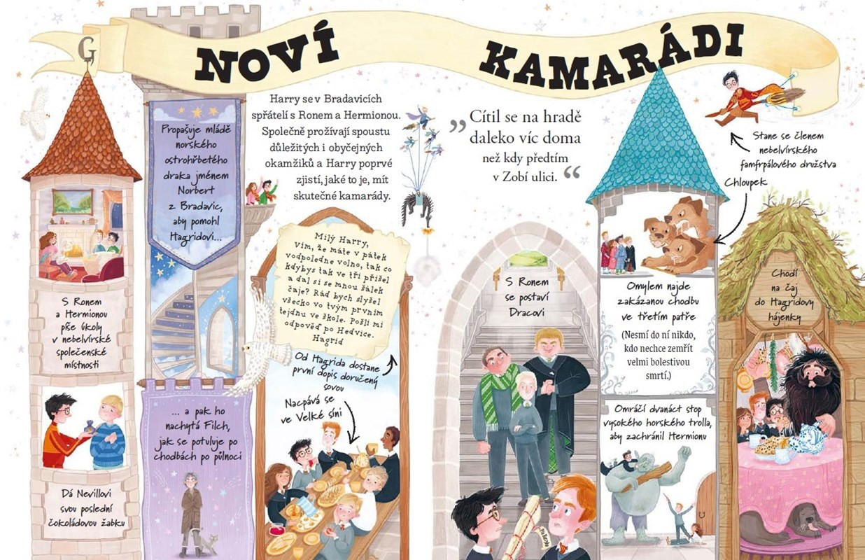 Objevte kouzelný svět J.K. Rowling očima chlapce, který zůstal naživu. Ponořte se do života Harryho Pottera, sirotka, který o svých jedenáctých narozeninách zjistil, že je čaroděj. Sledujte jeho cestu z přístěnku pod schody až do Bradavic, kde nachází přátele a čelí temným silám. Prožijte vzrušení z famfrpálu, první setkání s Hagridem a odhalte tajemství Kamene mudrců. Ilustrace Natalie Smillie oživují Harryho dobrodružství v úžasně zpracovaném průvodci pro mladé čtenáře od 6 let i dlouholeté fanoušky.
