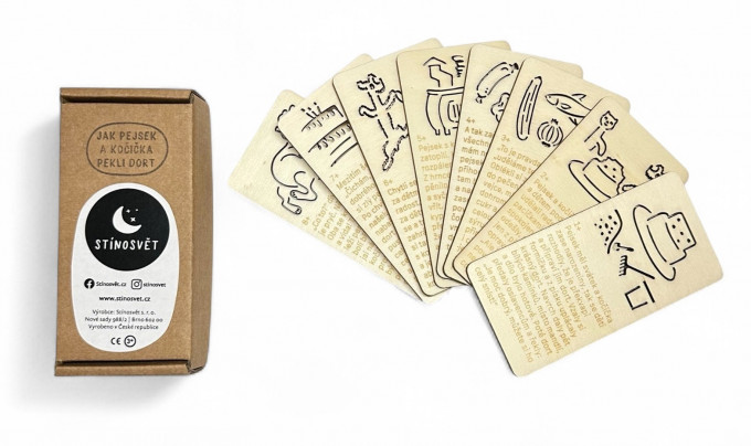 sada dřevěných karet určených k prosvícení např. baterkou