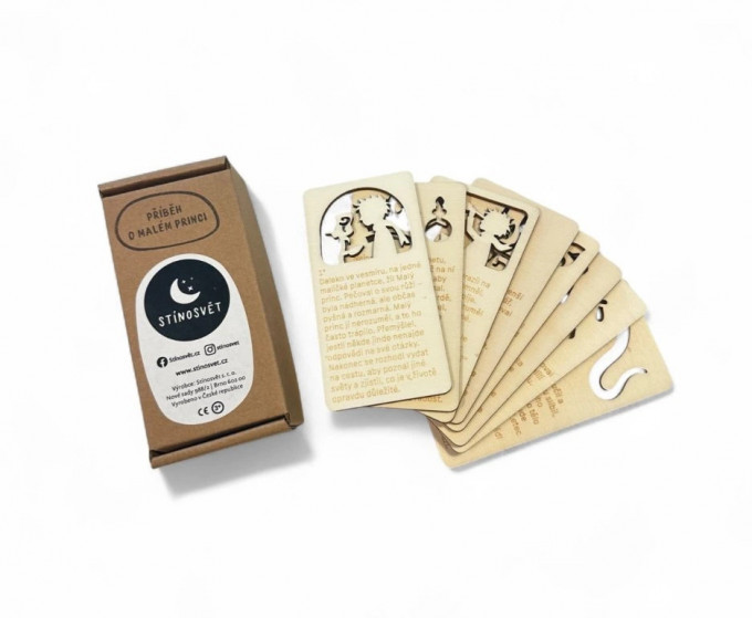 Sada obsahuje klasický příběh o malém princi rozdělený na osm karet s vyřezávanými ilustracemi. Jednotlivé kartičky jsou navrženy tak, aby bylo možné prosvětlovat obrázky a zároveň číst text uvedený pod nimi.
