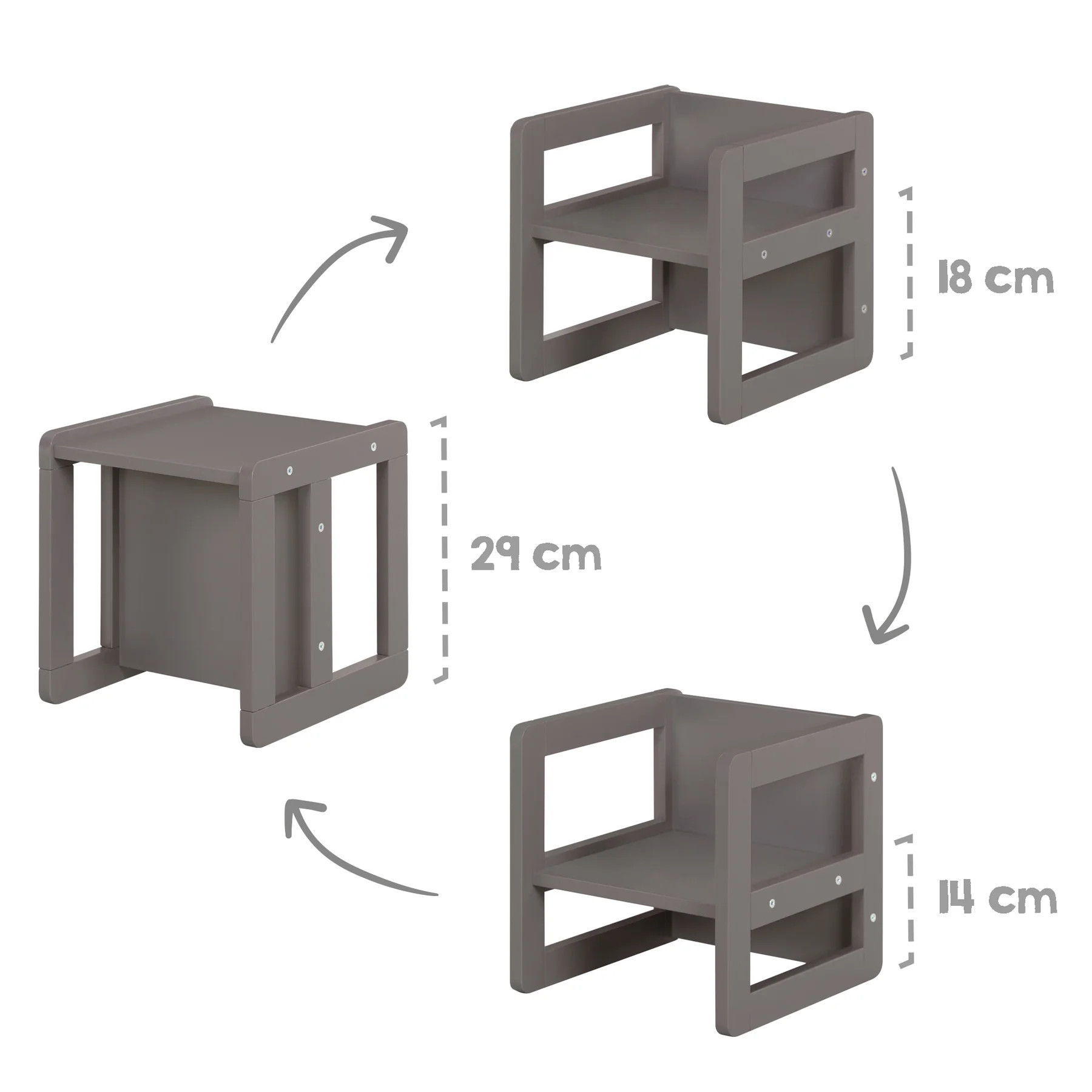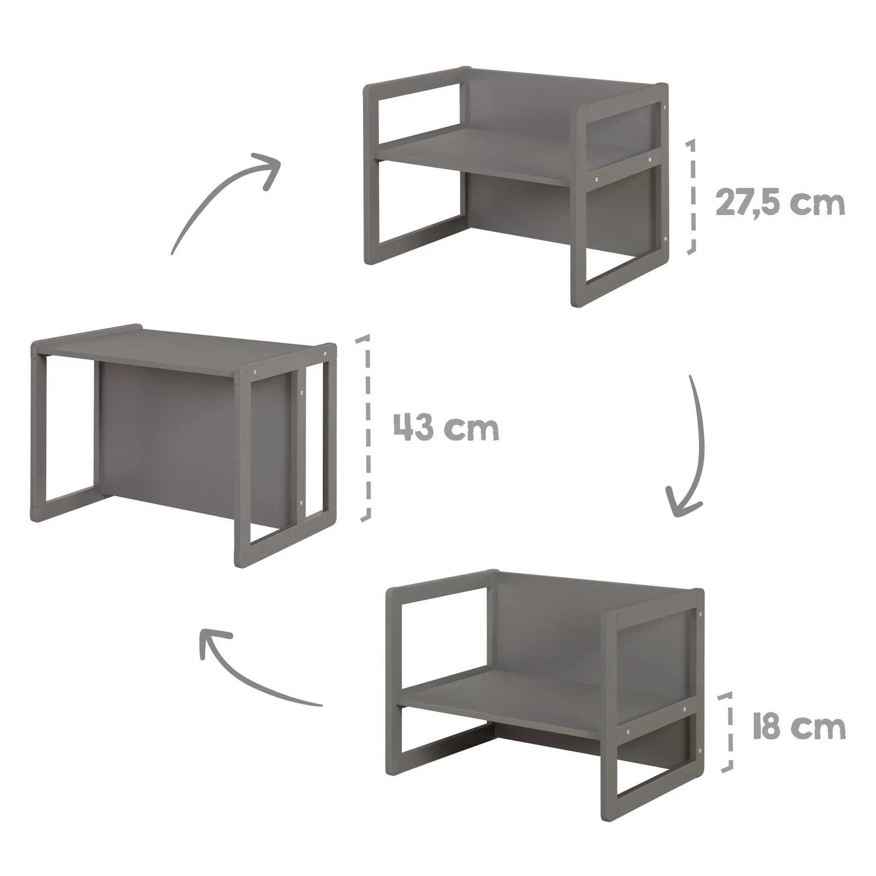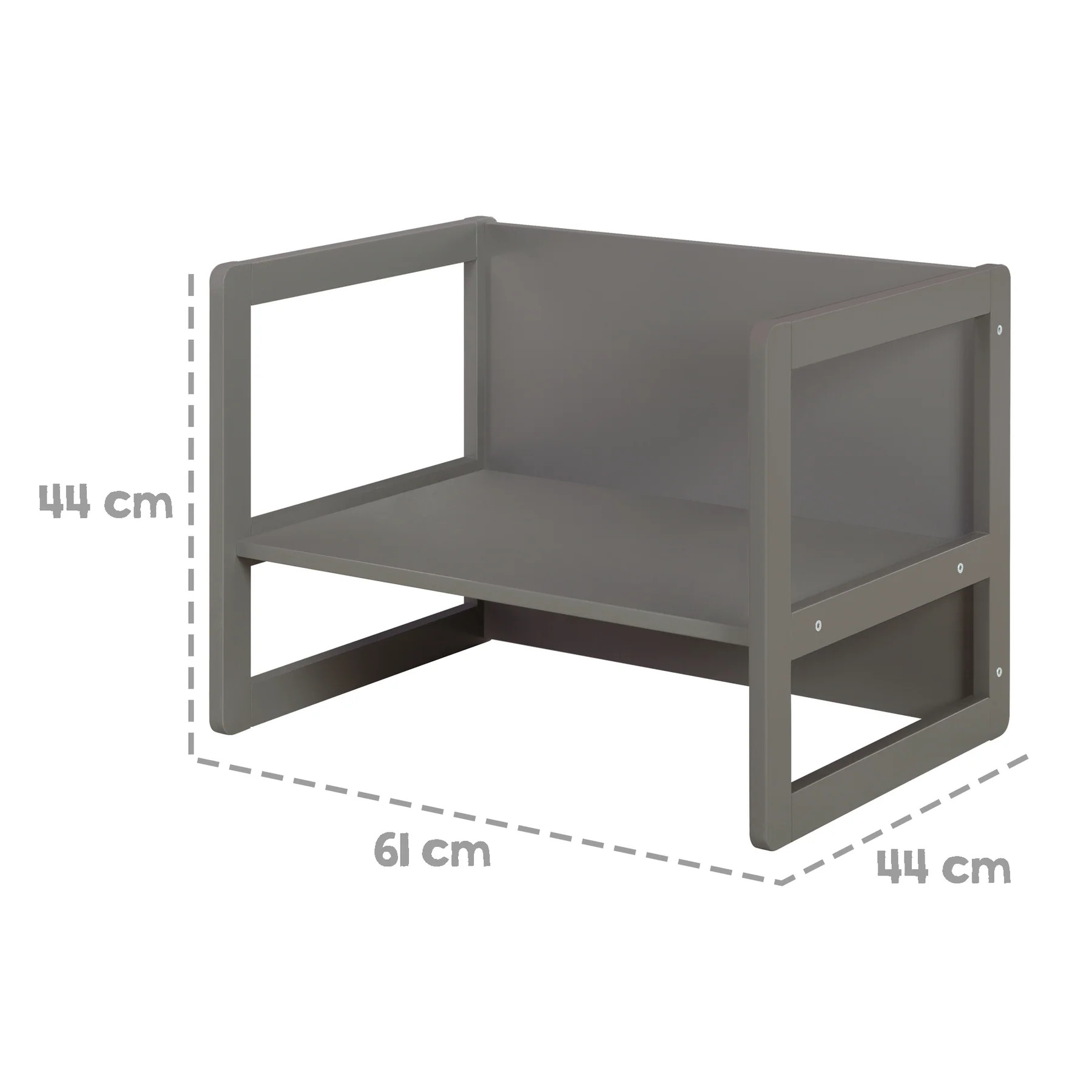 Multifunkční dětská sedací souprava je nábytek, který poroste s vaším dítětem. Je vyrobená z kvalitní vícevrstvé MDF desky, v moderní antracitové barvě. Hodí se do každého dětského pokoje. Vyniká svou flexibilitou, robustností a dlouhou životností.