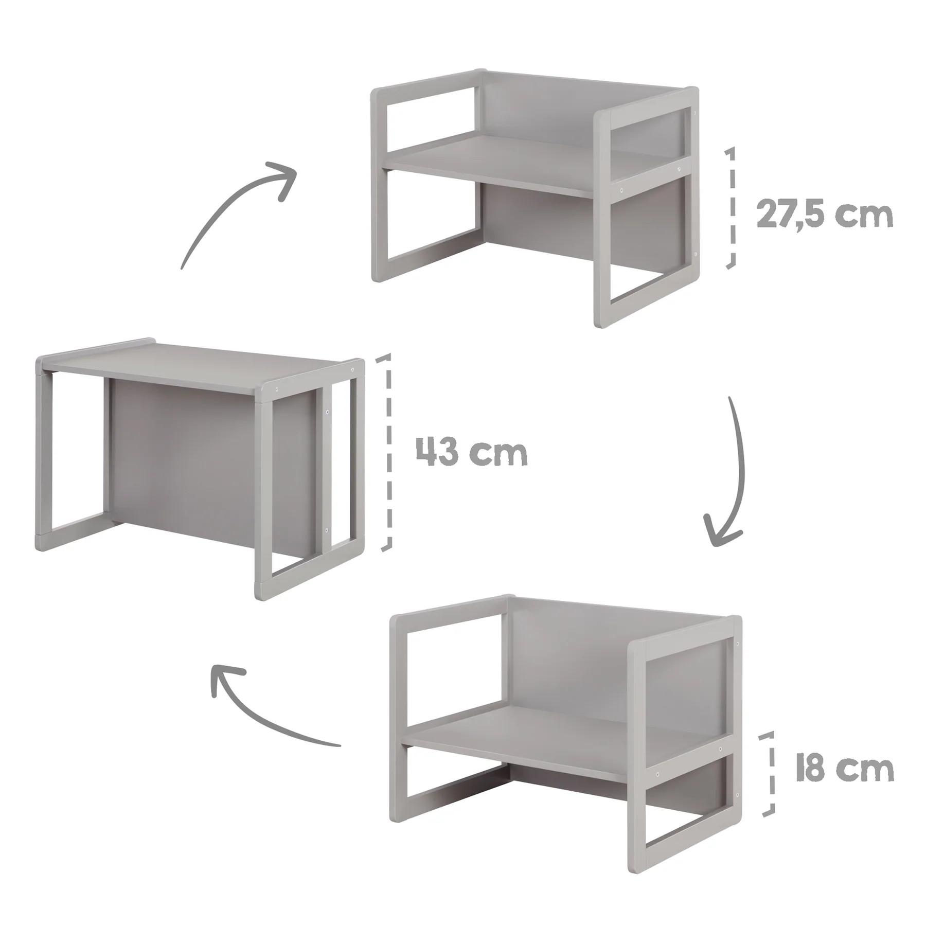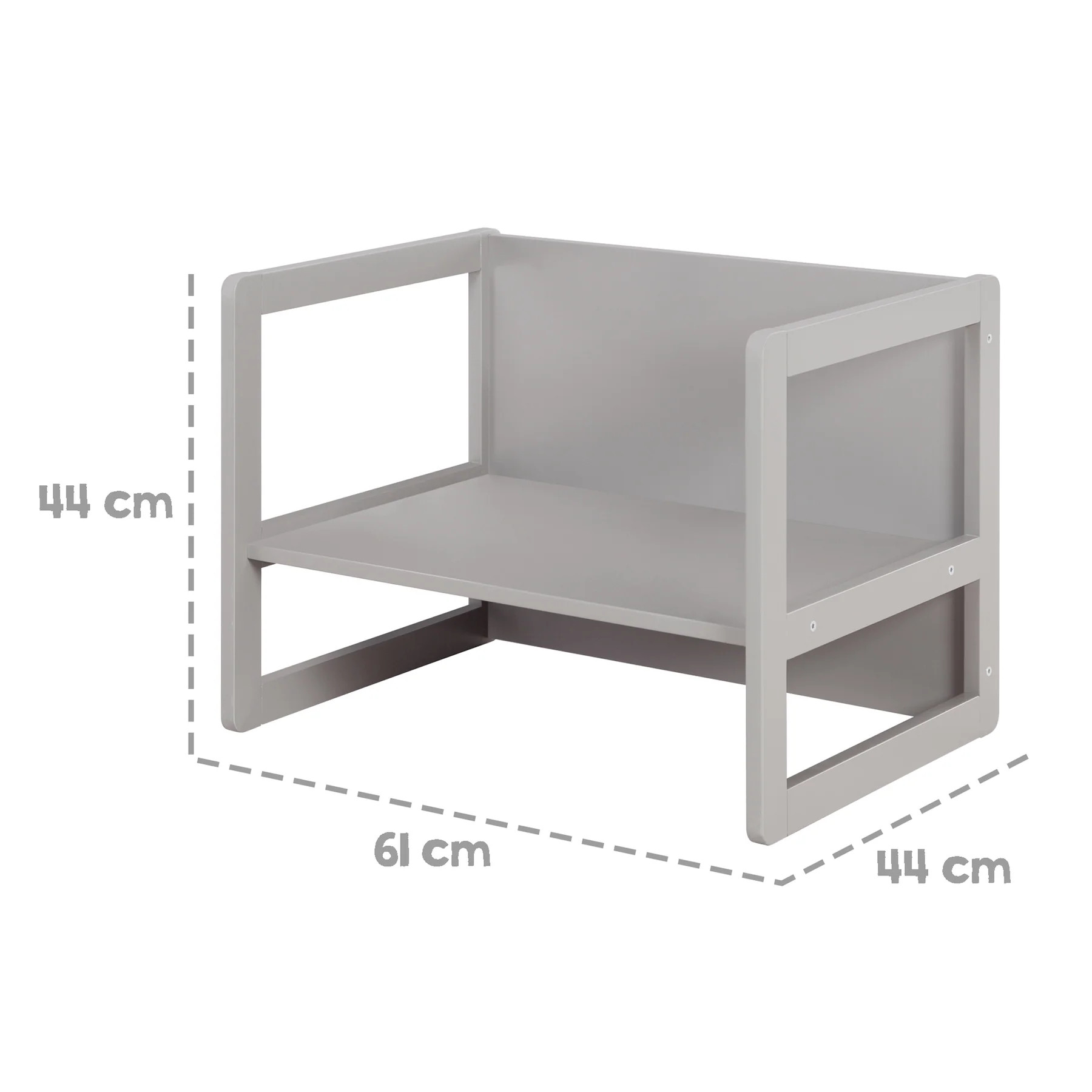 Multifunkční dětská sedací souprava je nábytek, který poroste s vaším dítětem. Je vyrobená z kvalitní vícevrstvé MDF desky, v moderní šedé barvě. Hodí se do každého dětského pokoje. Vyniká svou flexibilitou, robustností a dlouhou životností.