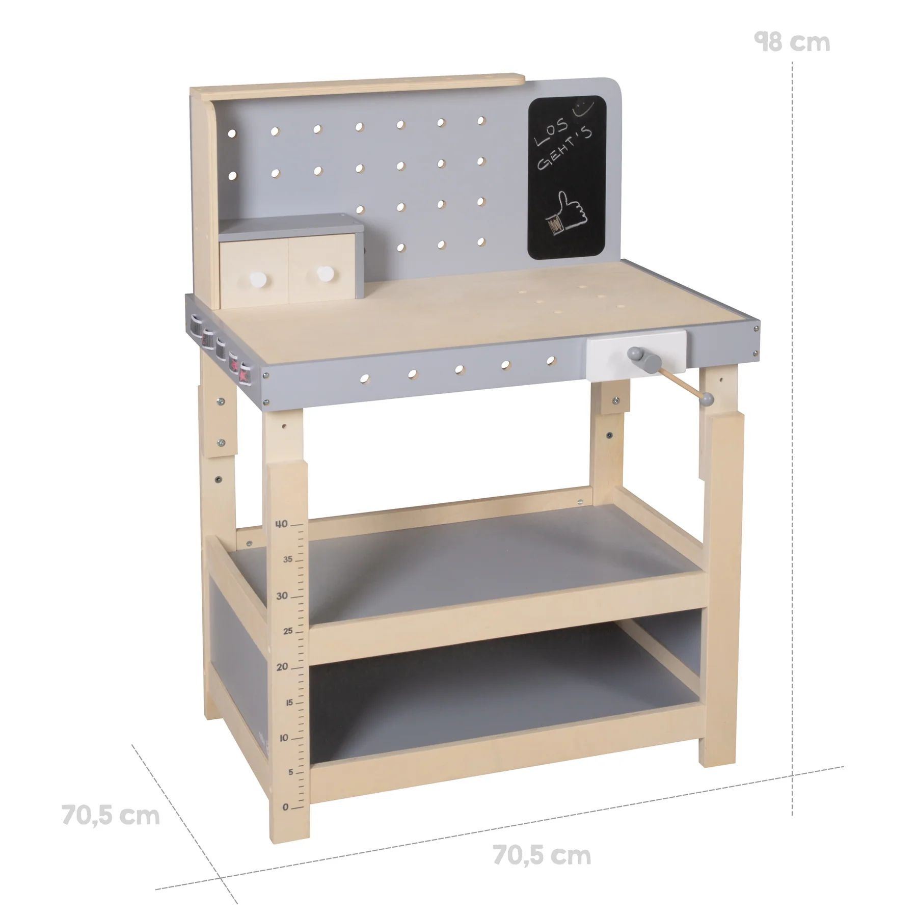 Tento dětský dřevěný ponk se 27dílným příslušenstvím je perfektní volbou pro malé kutily od 3 let. Nabízí dětem inspirativní prostor pro hru, která efektivně rozvíjí jejich kreativitu a motorické schopnosti. Unikátní vlastností tohoto ponku je jeho výšková nastavitelnost (54-67 cm), díky které roste spolu s vaším dítětem.