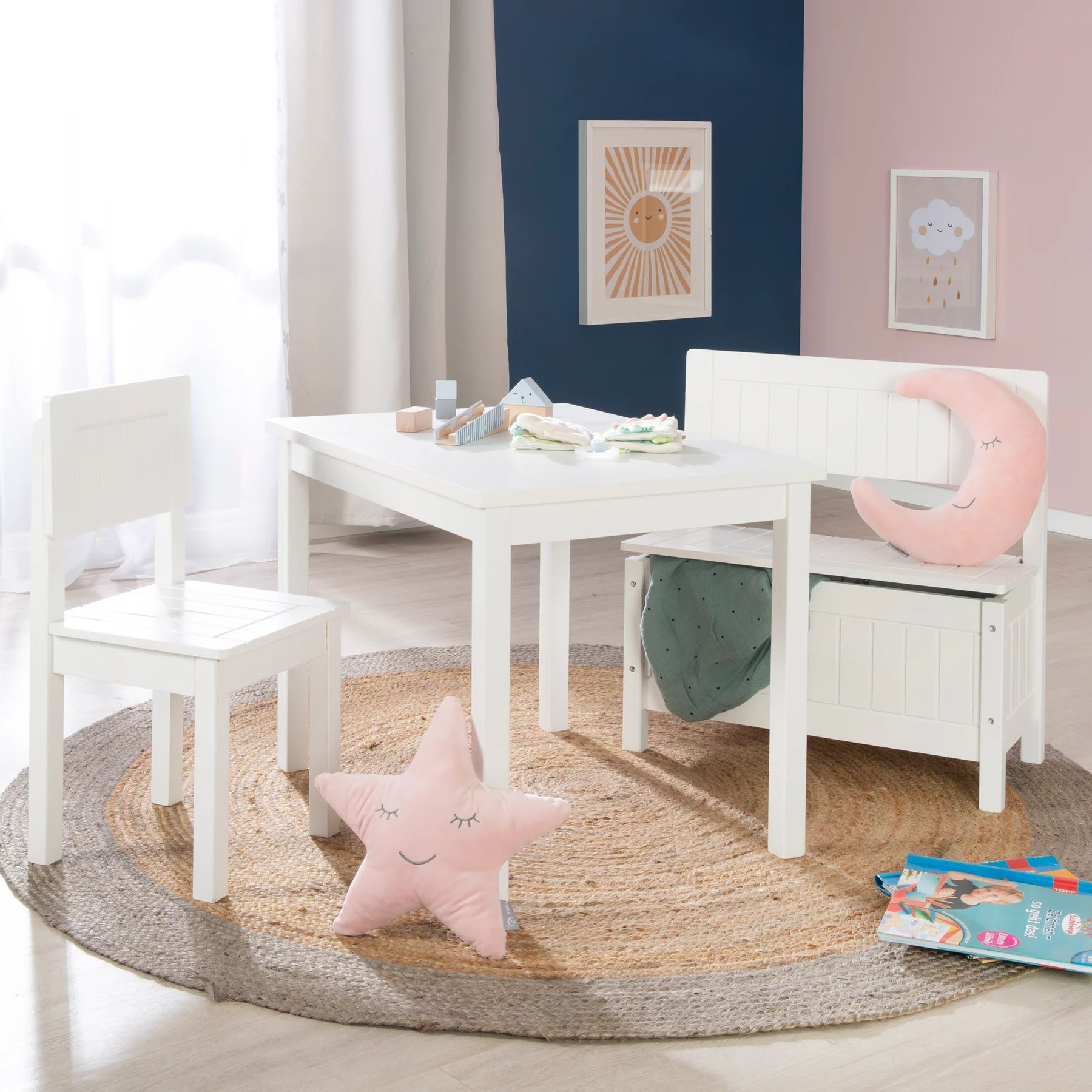 Bezpečnost dětí je u tohoto stolu prioritou, konstrukce neobsahuje žádné ostré hrany ani místa, kde by hrozilo skřípnutí prstů. Všechny použité materiály jsou testovány na přítomnost škodlivých látek, certifikovány a během výroby pravidelně kontrolovány. Stůl můžete skvěle doplnit ladící židlí a prostornou dětskou lavicí s úložným boxem, čímž vytvoříte kompletní sedací koutek pro vaše ratolesti.