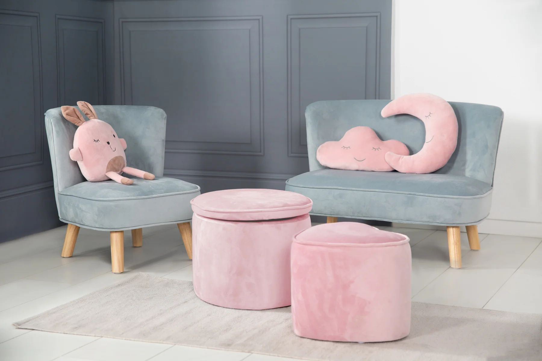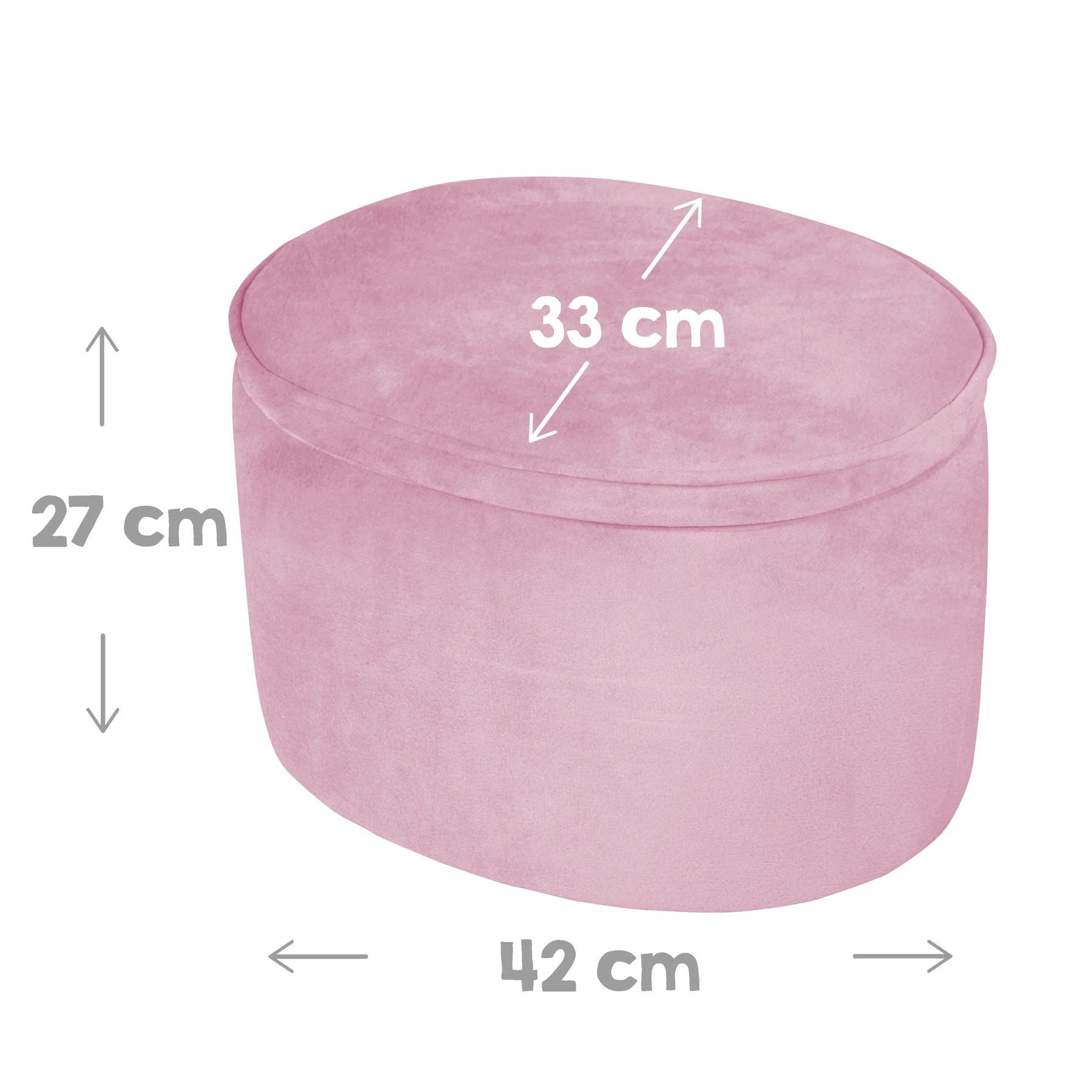 Dětský taburet s úložným prostorem je praktickým doplňkem do každého dětského pokoje. Tento oválný taburet nabídne pohodlné sezení pro vaše nejmenší od 18 měsíců. Taburet je měkce polstrovaný a disponuje praktickým úložným prostorem pro hračky, což z něj činí funkční a pohodlný kousek nábytku. Potah z jemného sametového materiálu dodává taburetu luxusní vzhled a příjemný pocit na dotek.