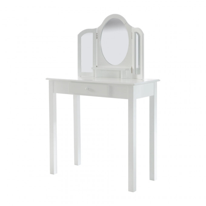 Dětský toaletní stolek se stoličkou v elegantním bílém provedení je snem každé malé parádnice. Tato sada nabídne stylové místo pro přípravu a hraní rolí pro dívky od 3 let. Stolek je vybaven třemi zrcadly, z nichž dvě jsou otočná, což zajišťuje skvělý přehled a realistickou zábavu při líčení. Robustní konstrukce s nohami z masivního dřeva zaručuje stabilitu a dlouhou životnost.