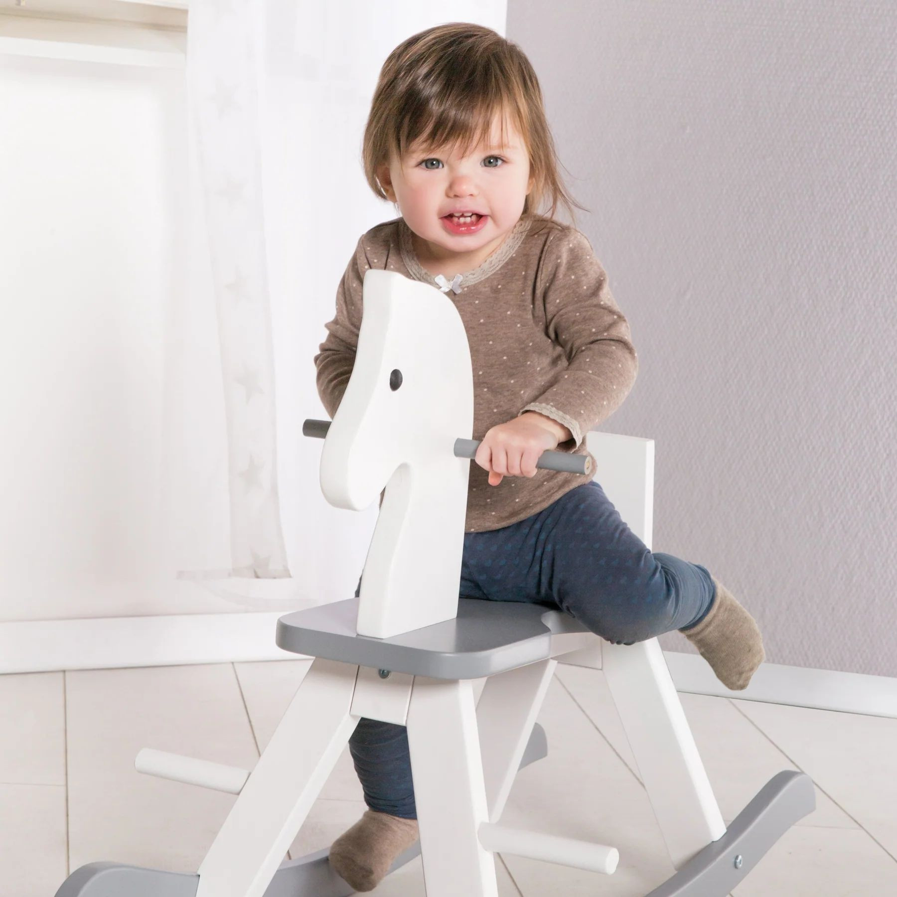 Tento houpací koník vyrobený z kvalitního masivního dřeva je klasickou hračkou, která podporuje motoriku, hmatové smysly a aktivitu vašeho dítěte. Koník je vhodný pro děti od 12 měsíců.Tato houpací hračka disponuje odnímatelným bezpečnostním kroužkem, který zajišťuje stabilitu pro nejmenší děti. Jakmile vaše dítě povyroste a dokáže sedět samostatně, lze ochranné madlo jednoduše odstranit a užívat si volné houpání.